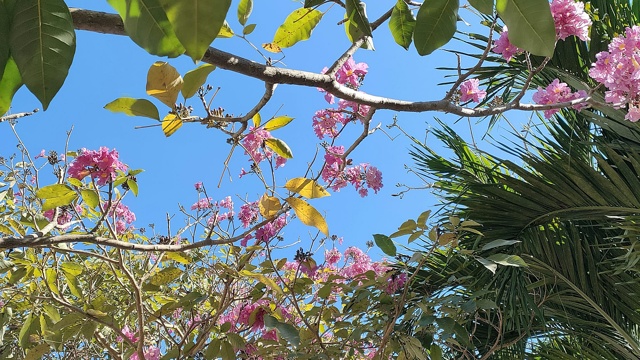 Wallpaper A Tree with Pink Flowers and Blue Sky