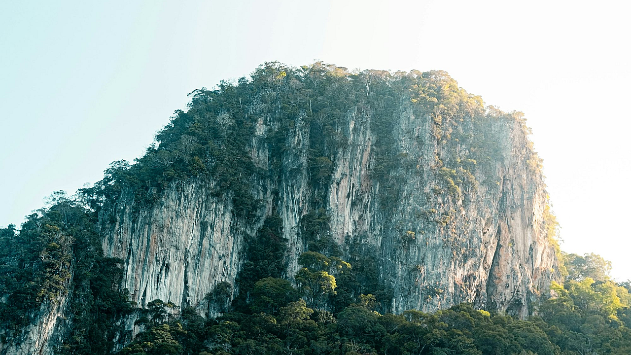 Wallpaper A Very Tall Mountain Covered in Lots of Trees