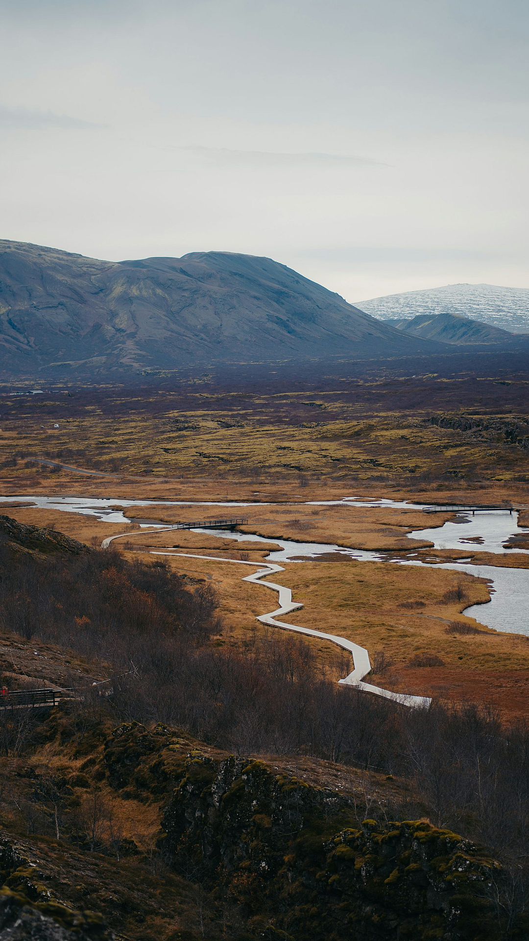 mountain range, mountains, peaks, hills, river, waterway, stream, valley, landscape, scenery, nature, outdoors, wilderness, panorama, vista