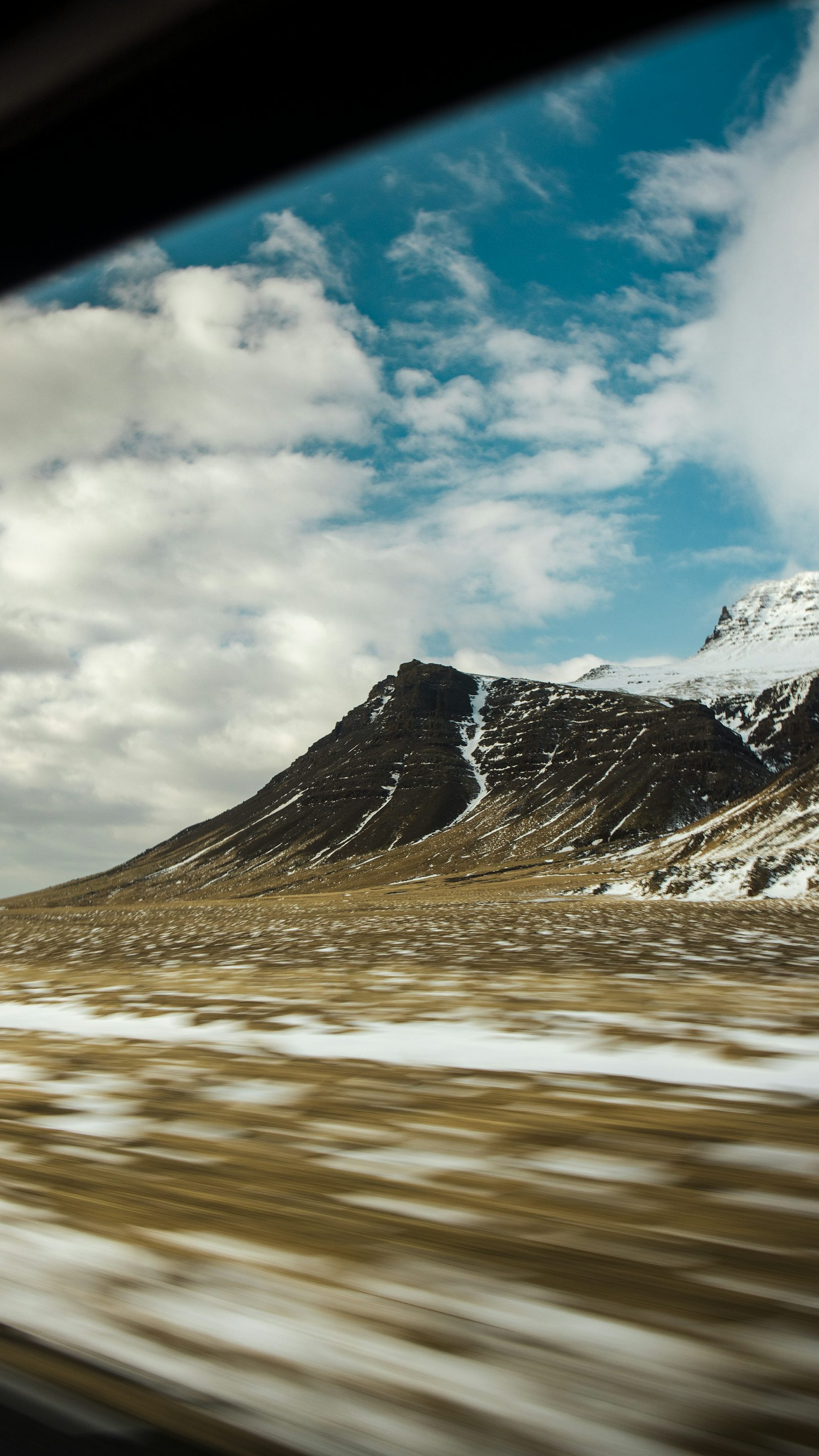 snowy mountain, mountain range, snow, winter, car window, view, landscape, scenery, travel, road trip, driving, cold, icy, peaks, alpine