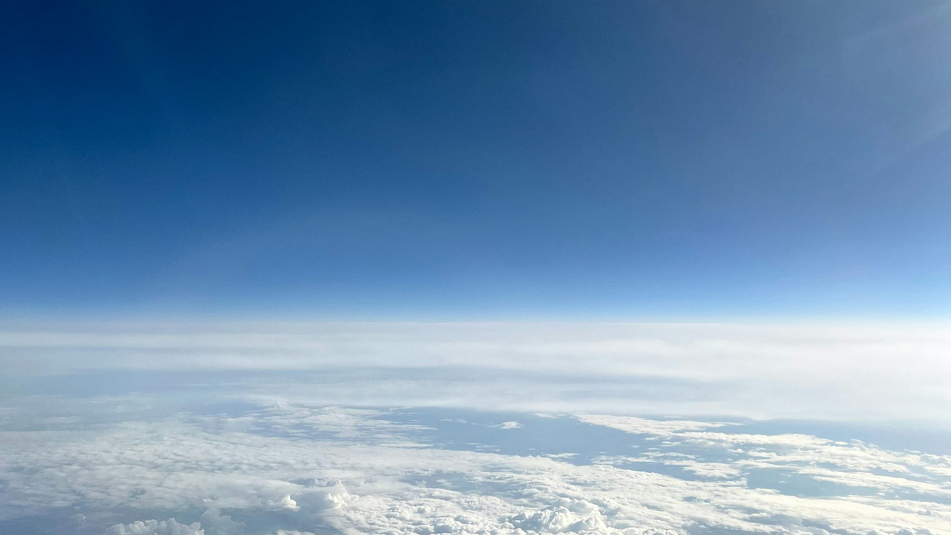 This wallpaper features a breathtaking aerial view of the sky and clouds as seen from an airplane. The image captures the vastness and beauty of the cloudscape, showcasing a stunning panorama of nature’s artistry.