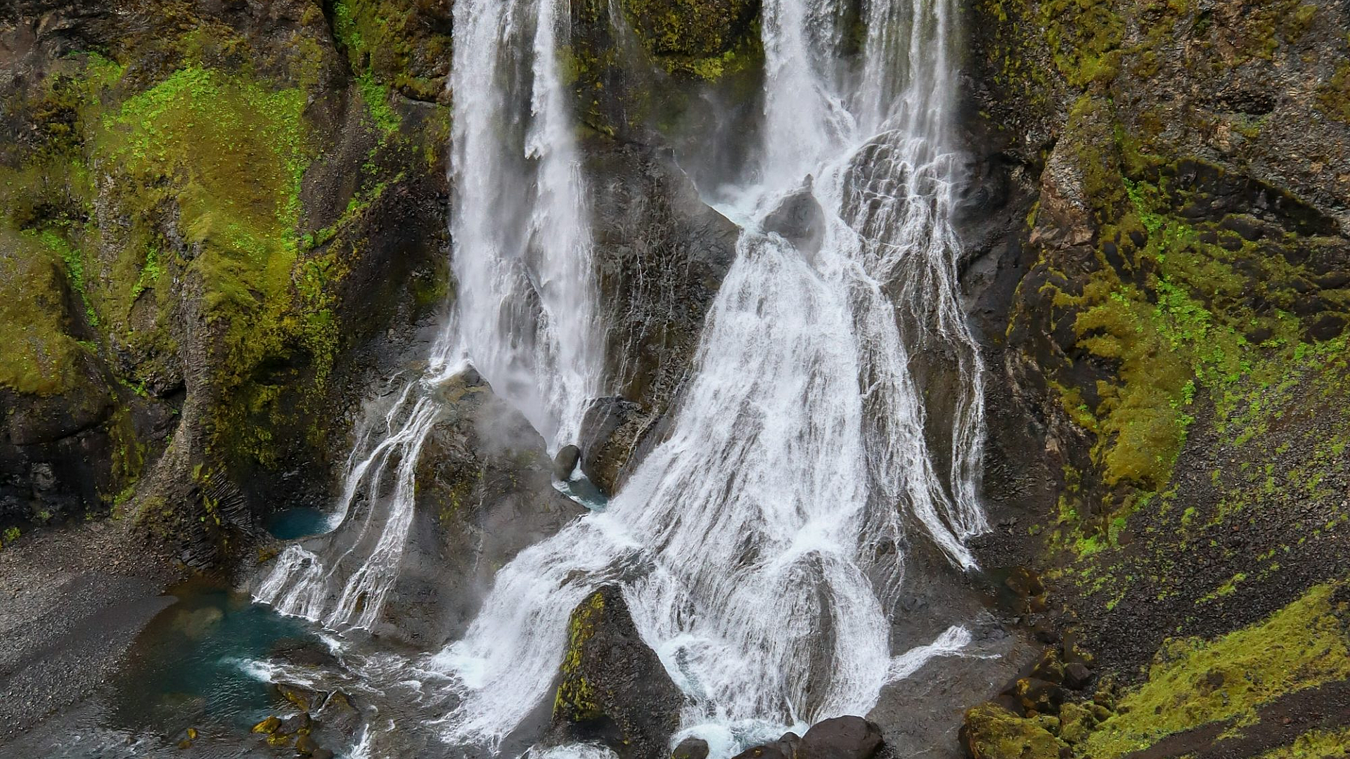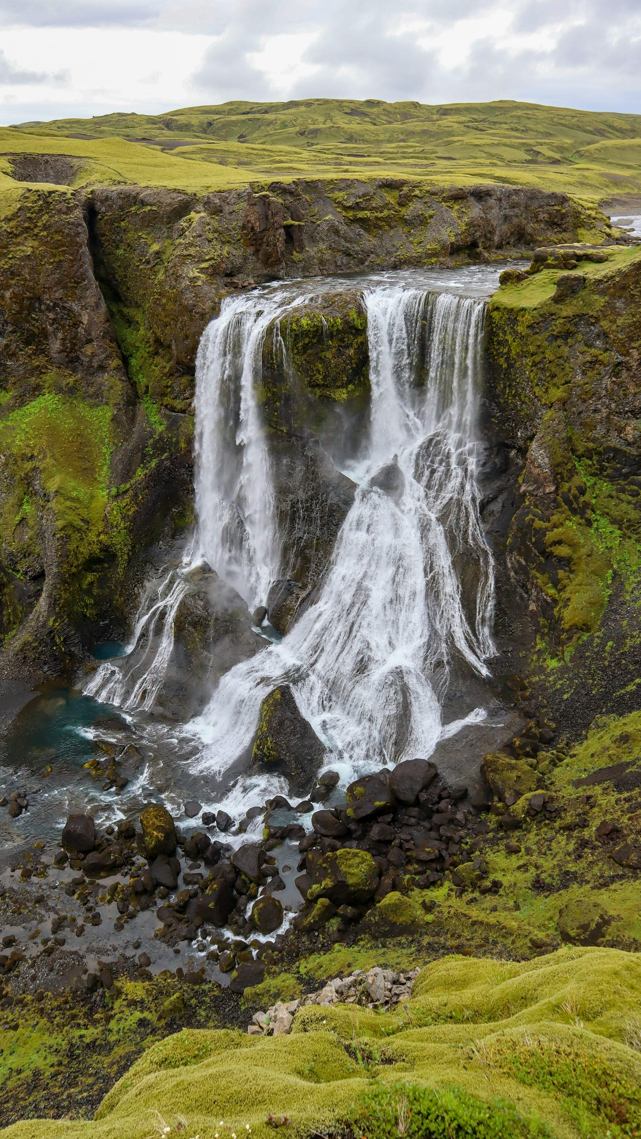 waterfall, grassy area, meadow, field, greenery, nature, landscape, scenery, water, cascade, flowing water, serenity, peaceful, tranquil, natural beauty, idyllic