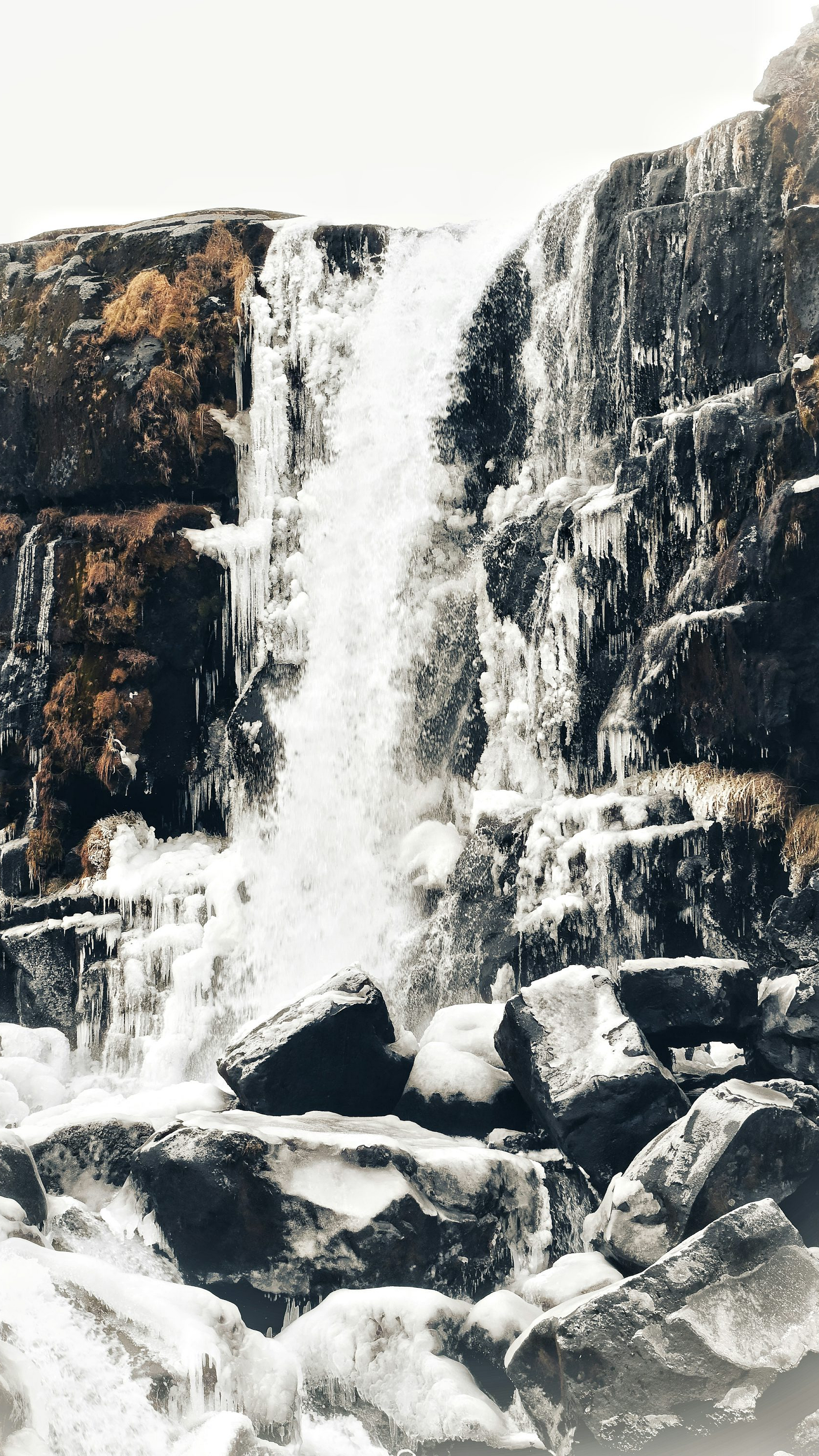 waterfall, snow, ice, rocks, winter, frozen, nature, landscape, scenic, cold, icy, water, cascade, mountain, winter wonderland