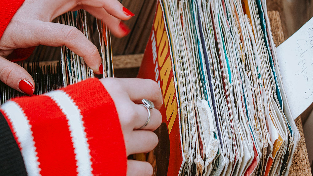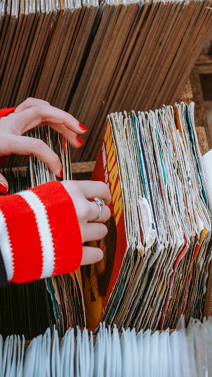 This wallpaper features a woman wearing a striking red and white striped sweater. She is intently searching through a drawer filled with files, creating a scene that evokes feelings of organization, focus, and perhaps even a touch of mystery. The image is perfect for those who appreciate a blend of color, texture, and a subtly intriguing narrative.