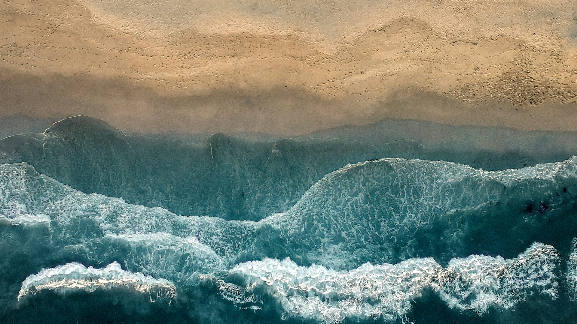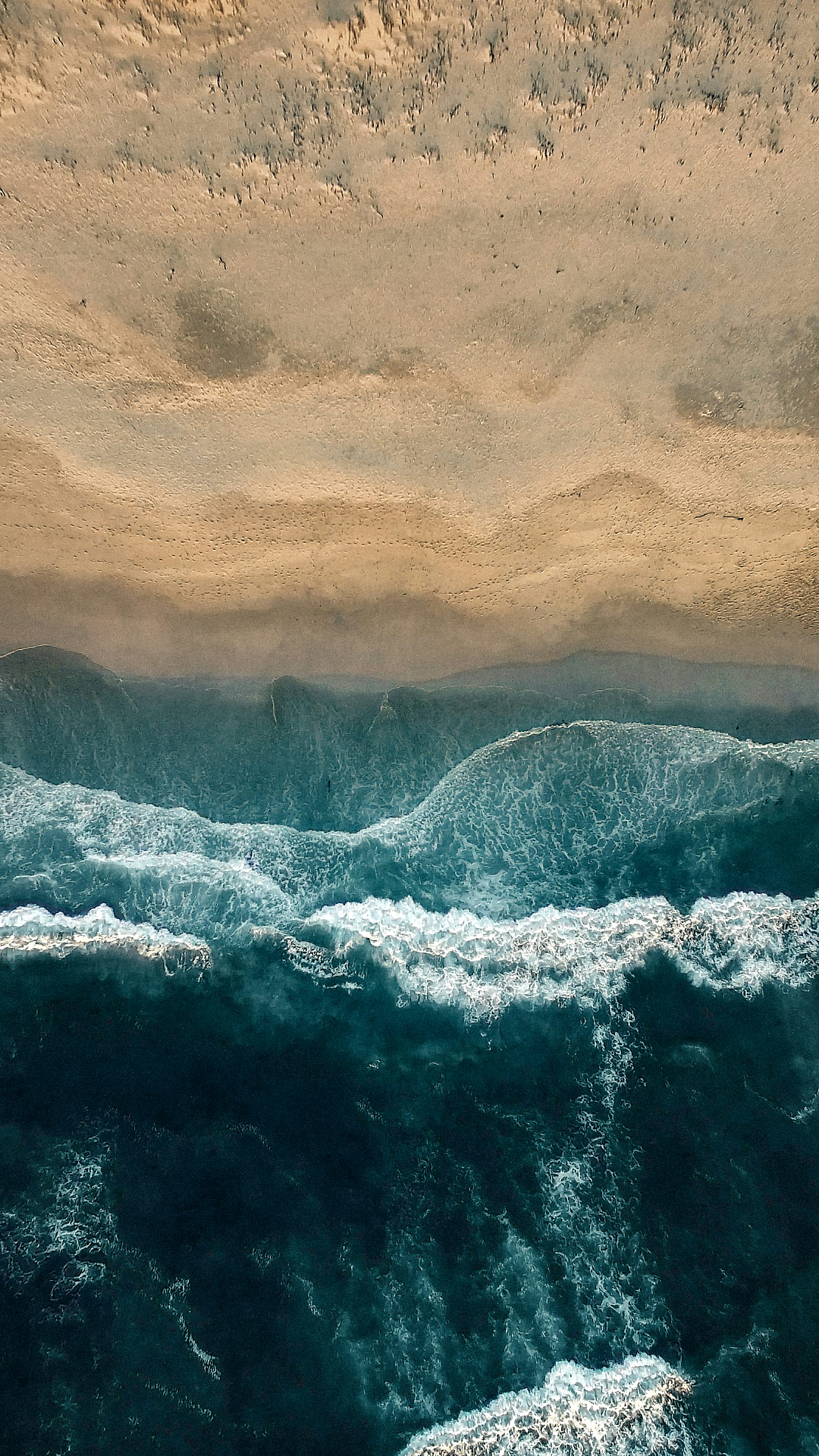 aerial photo, sea, ocean, seashore, coastline, beach, water, waves, sand, sky, landscape, nature, seascape, coastal, overhead view