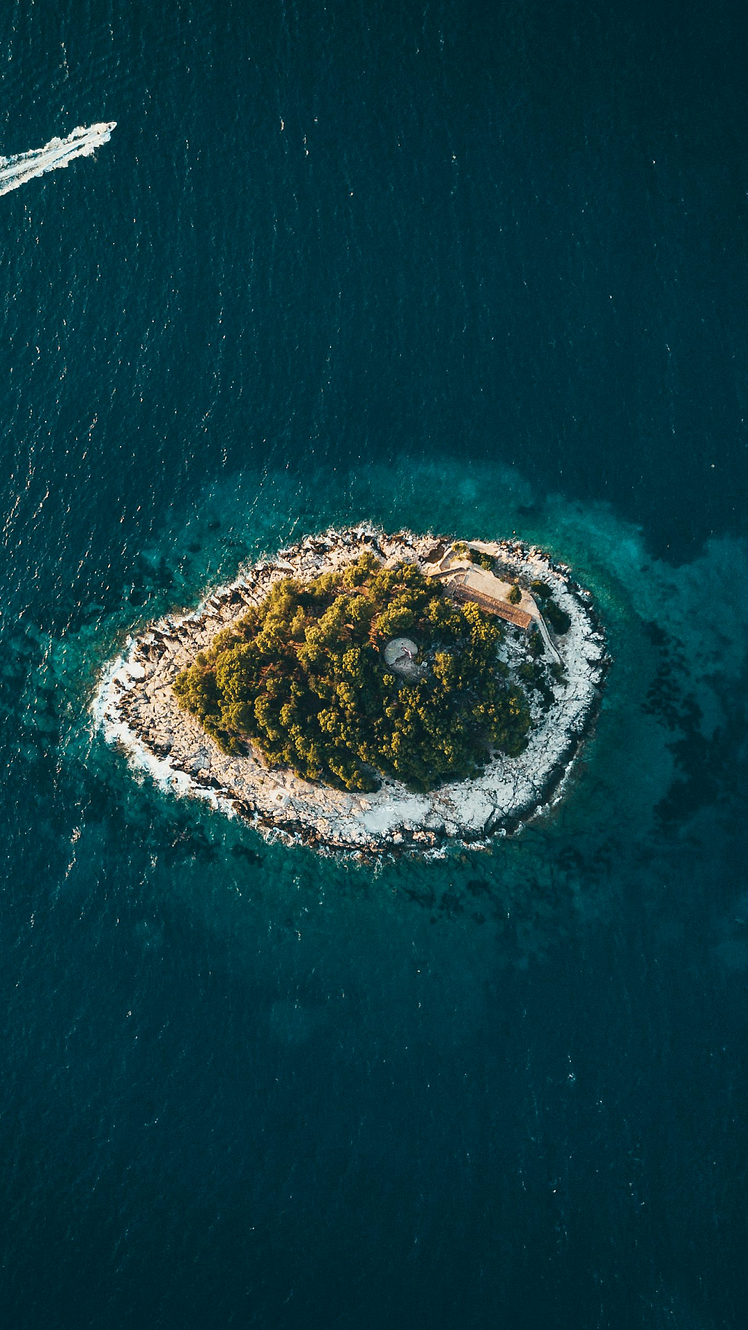 Wallpaper Aerial Photography of Island Surrounded by Sea