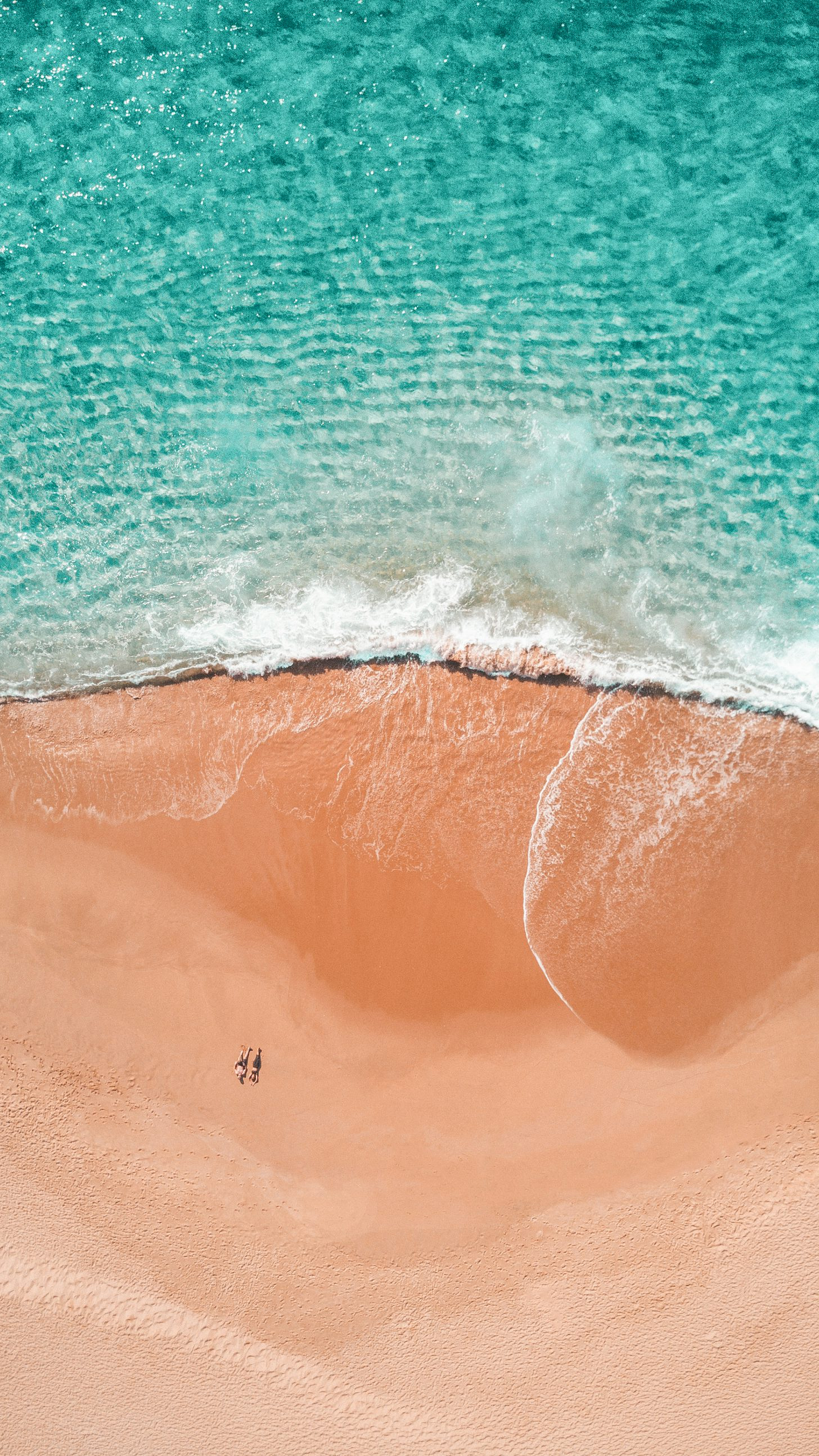 Wallpaper Aerial Photography of Two People Sunbathing on the Seashore