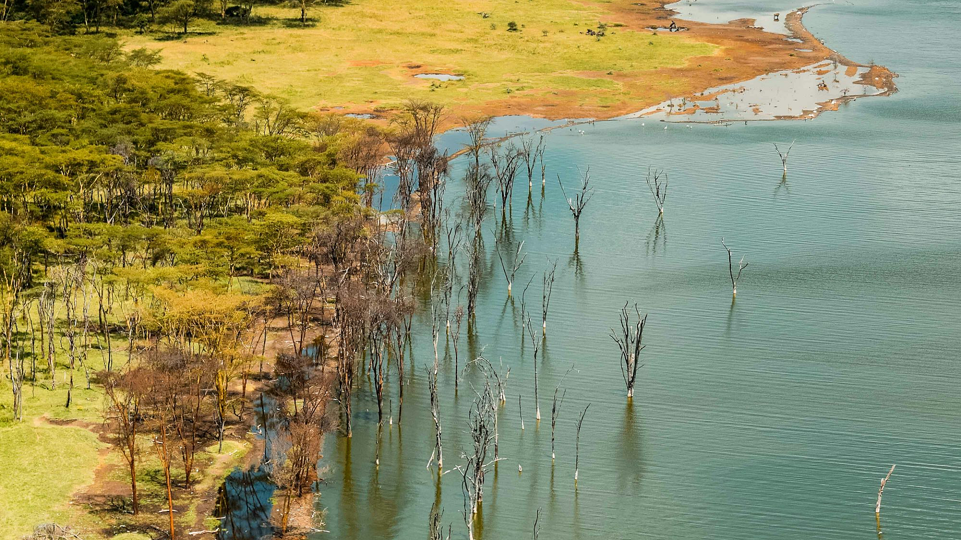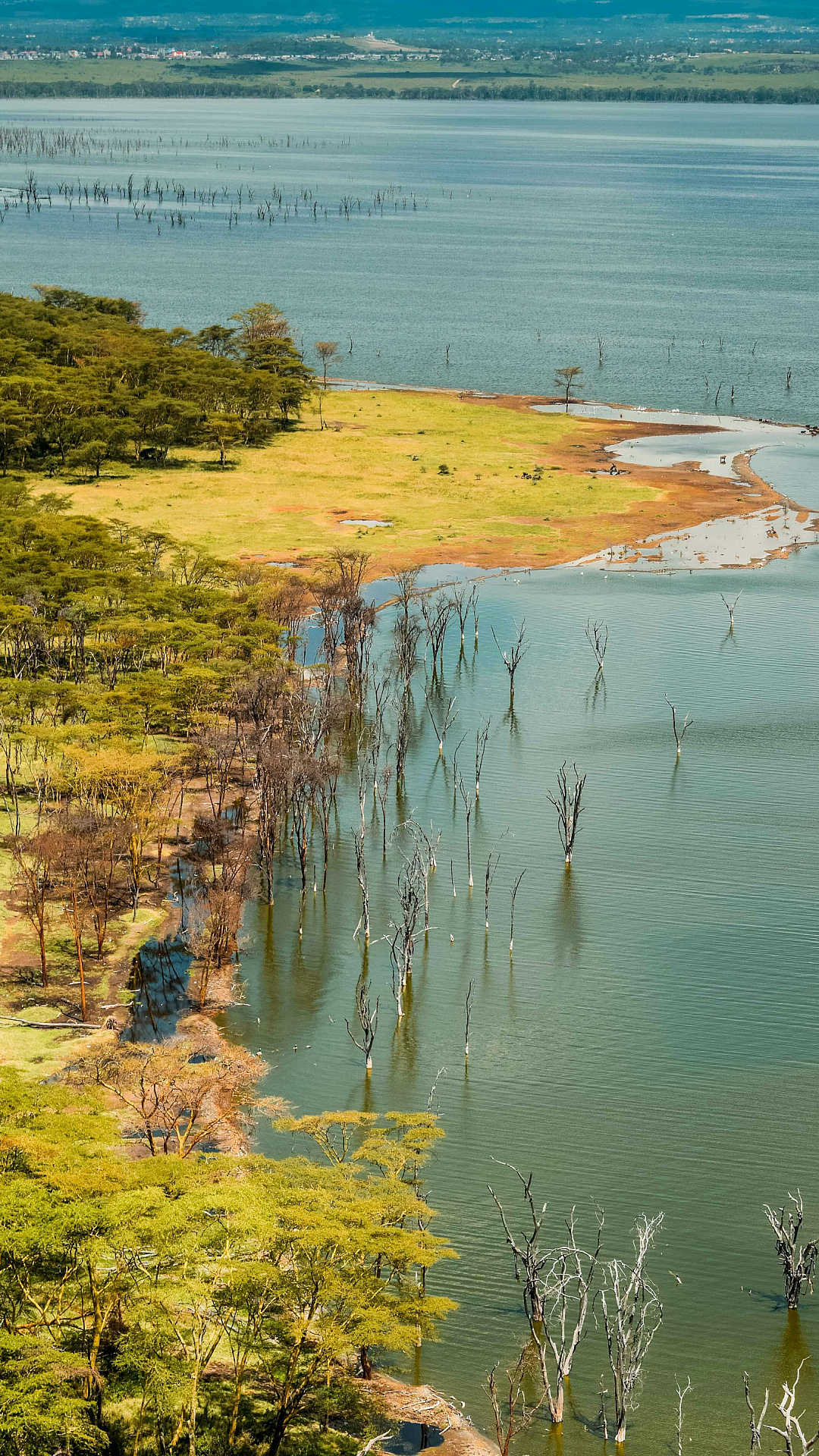 aerial view, grass field, green grass, brown grass, water, lake, river, ocean, daytime, landscape, nature, scenery, outdoor, rural, meadow