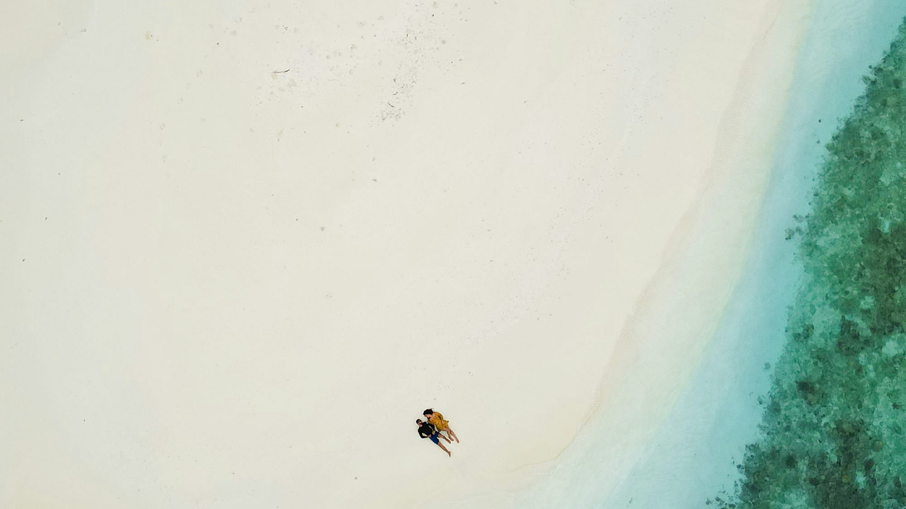aerial view, beach, boat, ocean, sea, coast, shoreline, water, sand, sky, waves, small boat, seascape, coastal scene, overhead view