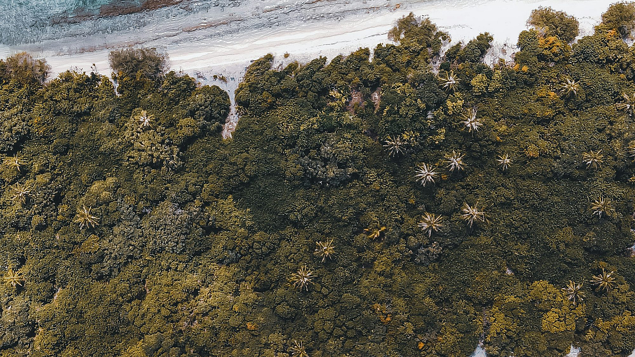 aerial view, beach, trees, coastline, ocean, sand, shore, seaside, tropical, landscape, scenery, nature, overhead, vista, panoramic, coastal