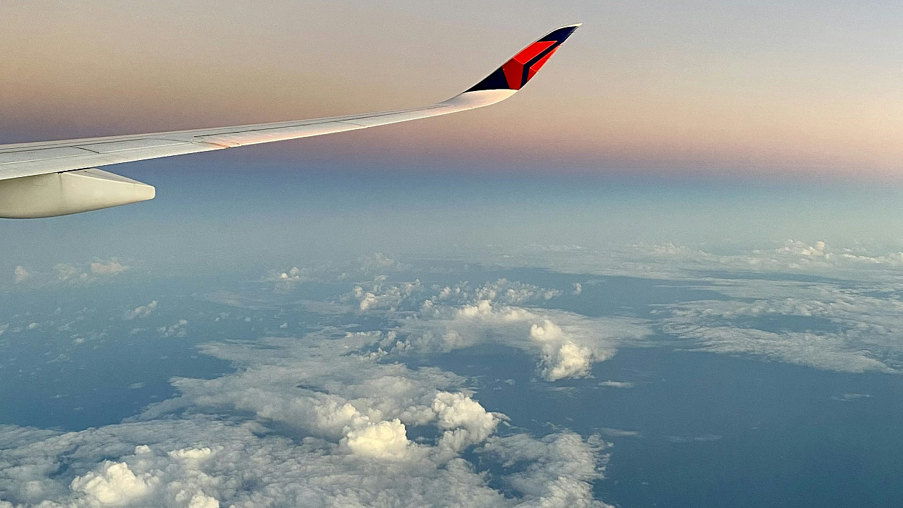 airplane wing, sky, clouds, aviation, flight, travel, airplane, aircraft, aeroplane, wingspan, blue sky, white clouds, aerial view, high altitude, perspective