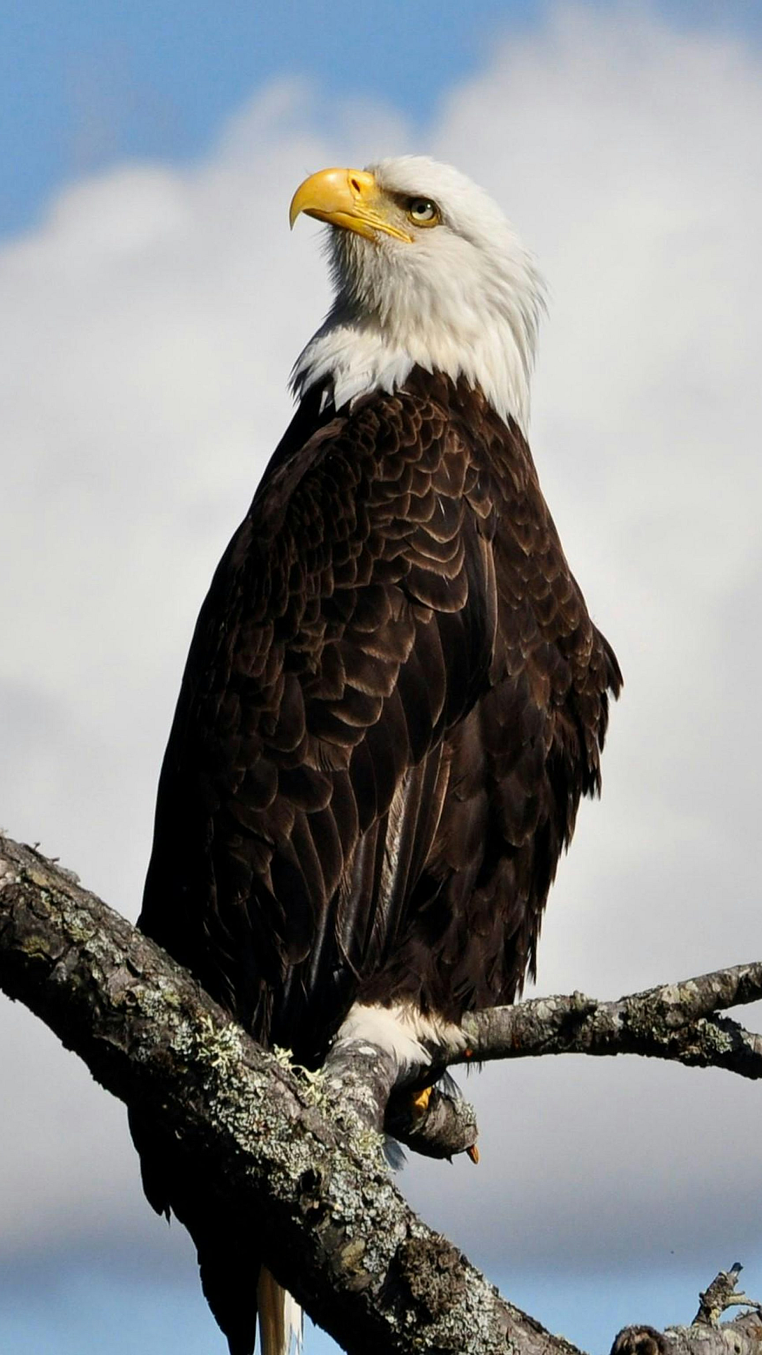 Wallpaper Bald Eagle Standing on Gray Tree Branch