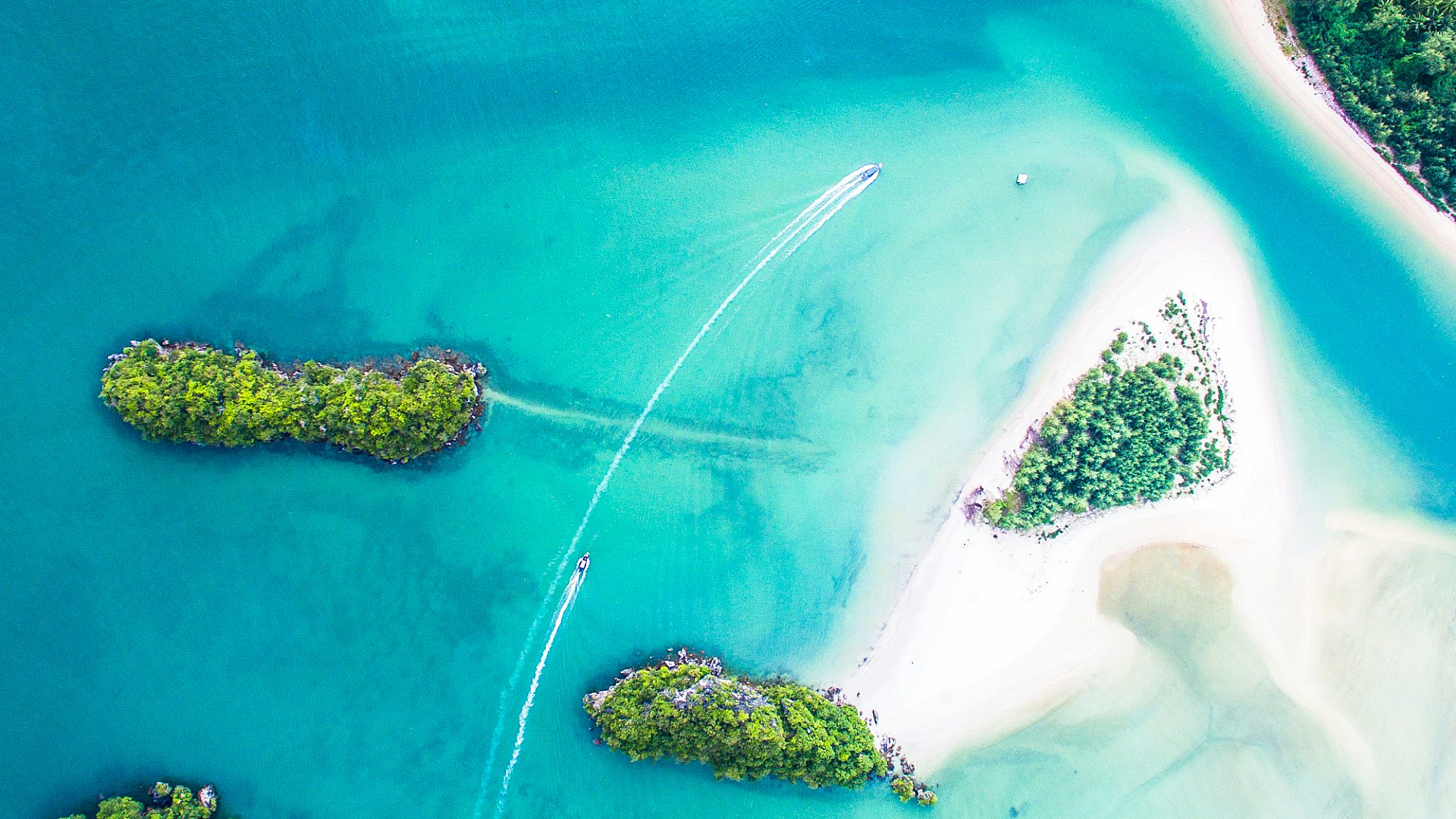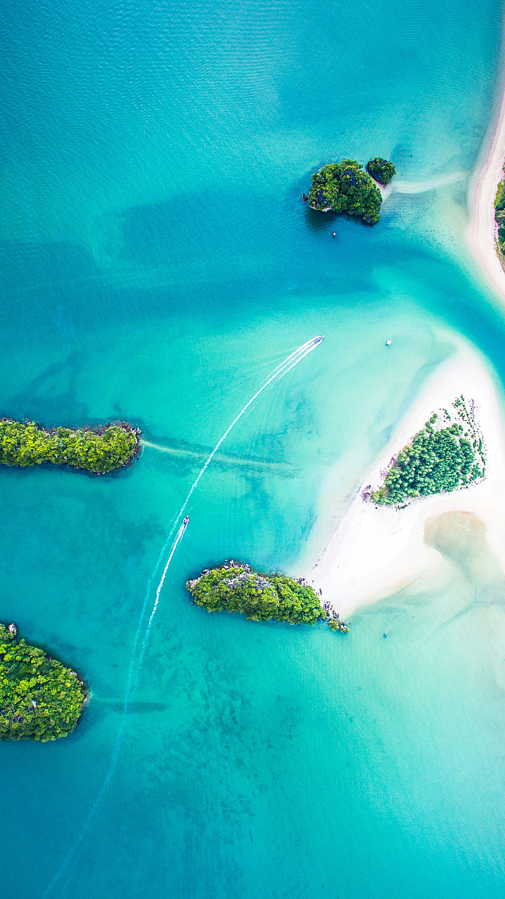 This stunning wallpaper showcases a breathtaking bird’s eye view of a picturesque island chain. The vibrant colors of the ocean contrast beautifully with the lush greenery of the islands, creating a truly captivating scene. Perfect for adding a touch of tropical paradise to your desktop or mobile device.