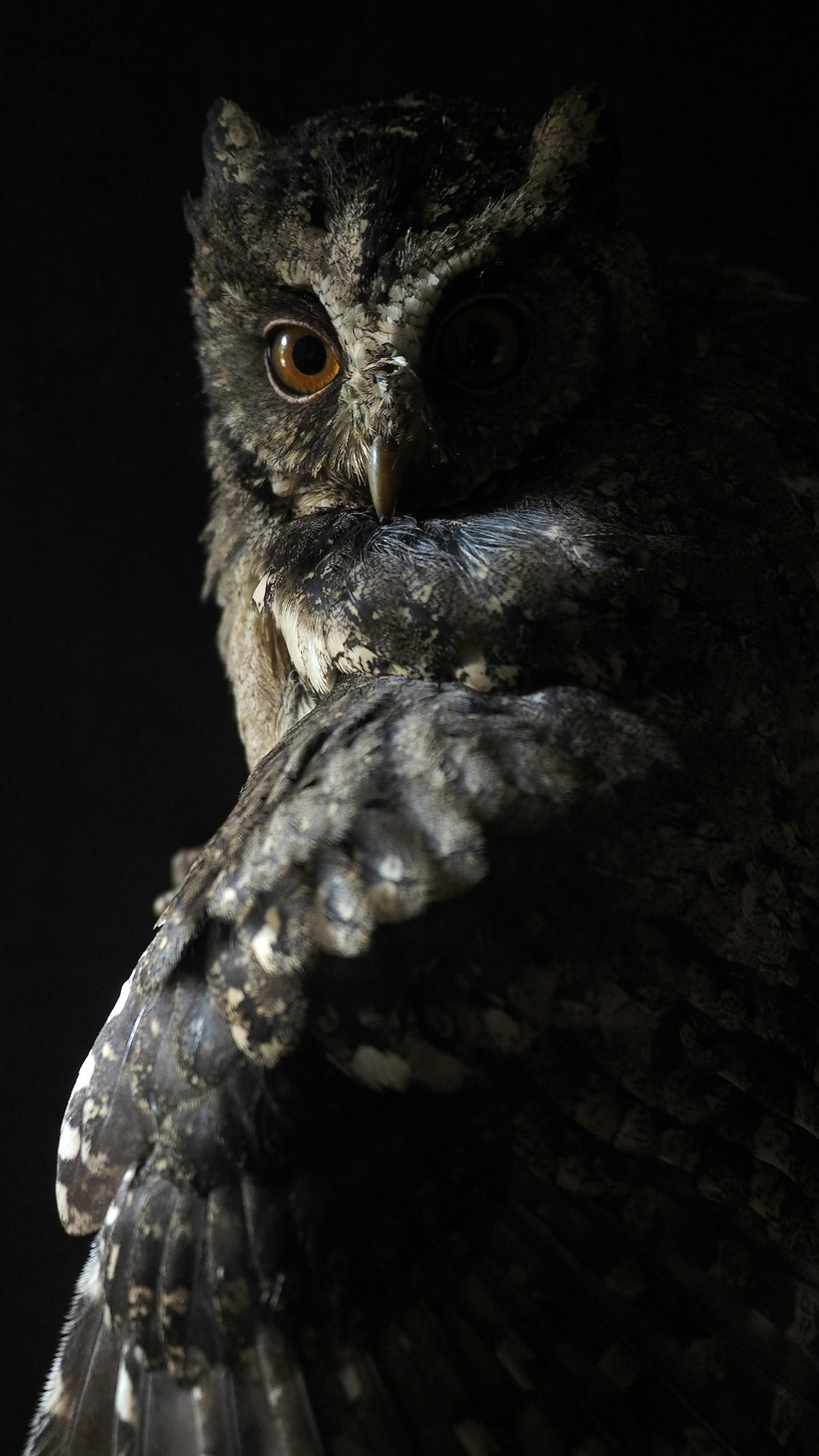 black owl, brown owl, dark owl, nocturnal bird, owl wallpaper, bird wallpaper, animal wallpaper, nature wallpaper, wildlife wallpaper, forest wallpaper, dark background, brown and black, feathered friend, majestic owl, owl portrait