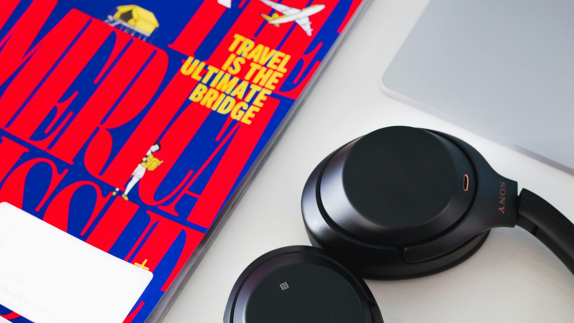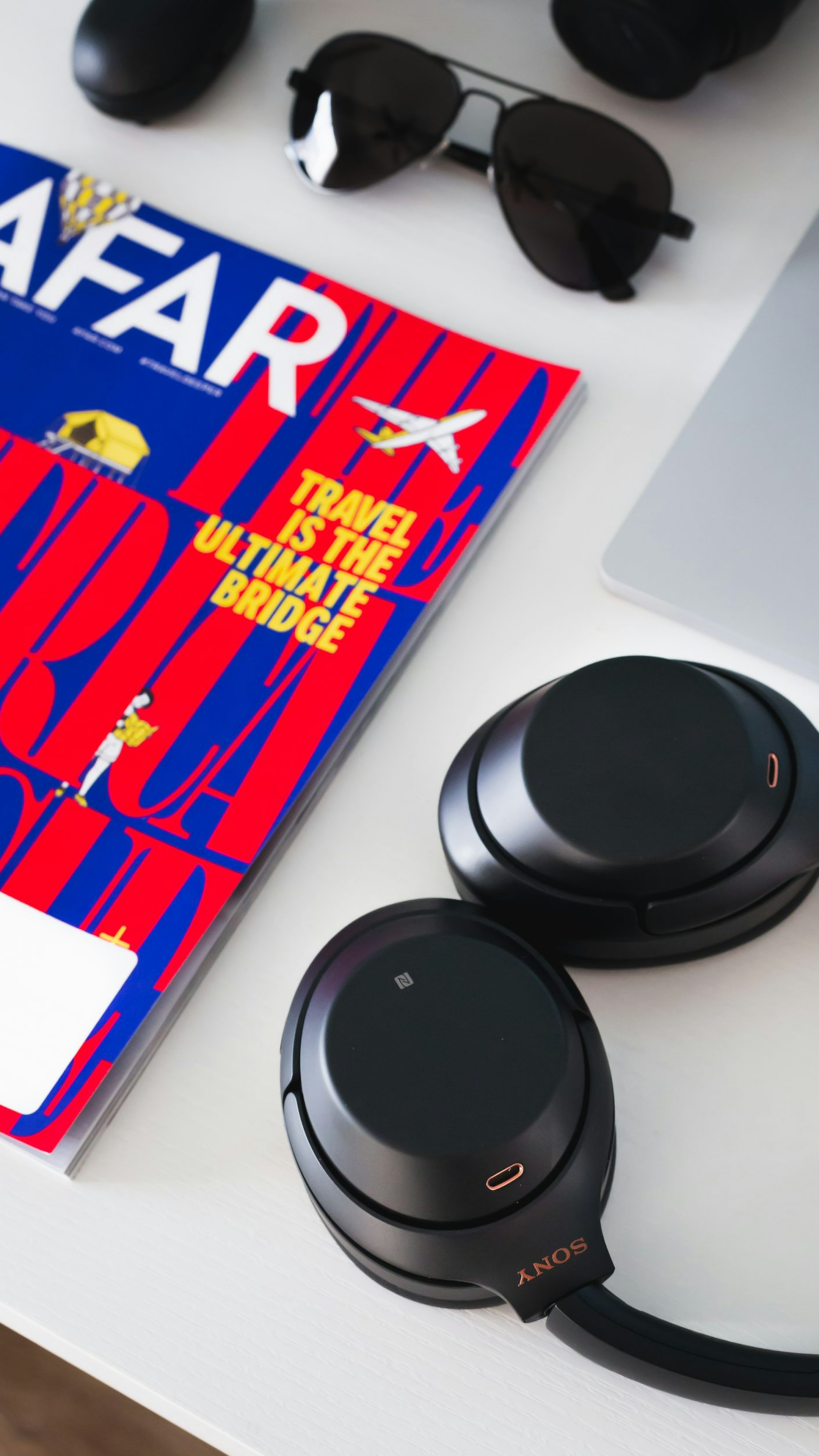 Wallpaper Black and Gray Bluetooth Headphones on White Table