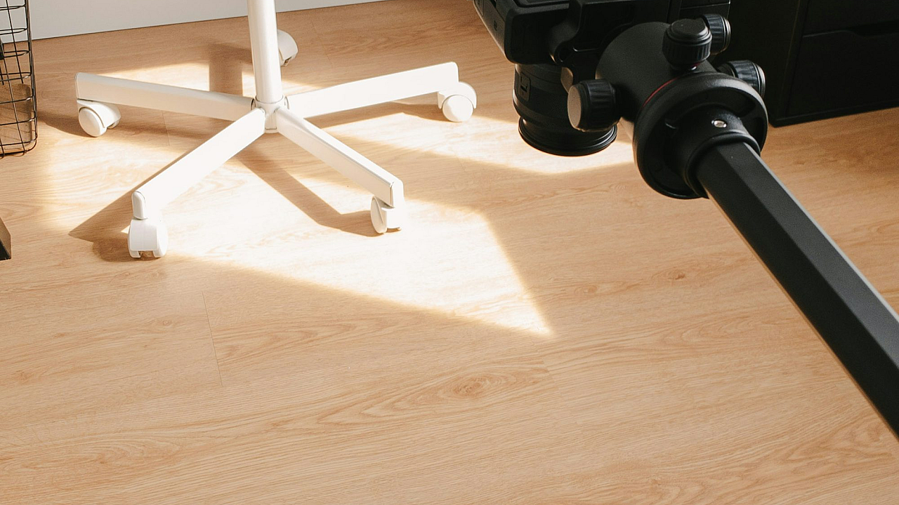 black and gray camera on brown wooden desk