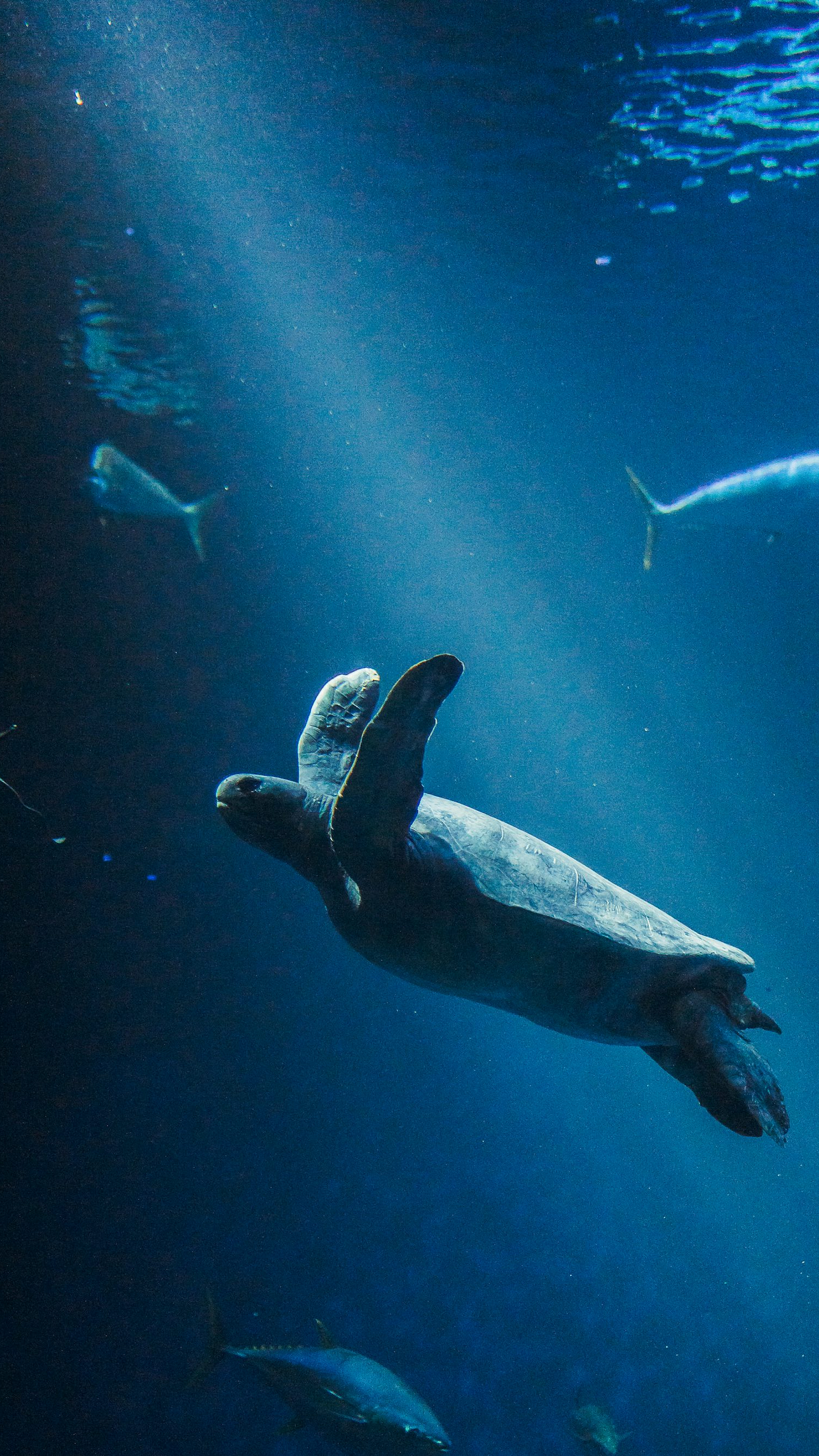 The image showcases the turtle’s serene movements, highlighting the grace and elegance of this magnificent aquatic creature. It’s a perfect choice for a desktop background, phone screen, or any device where you want a beautiful and calming image. The simple yet powerful composition makes it a versatile wallpaper option that complements various aesthetic styles.