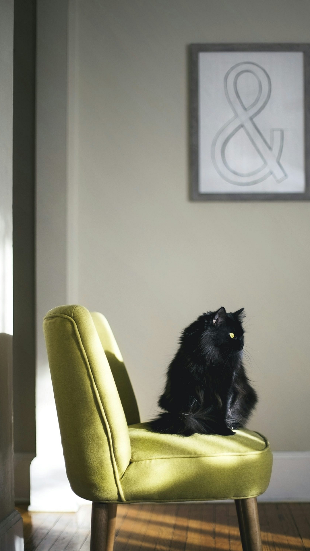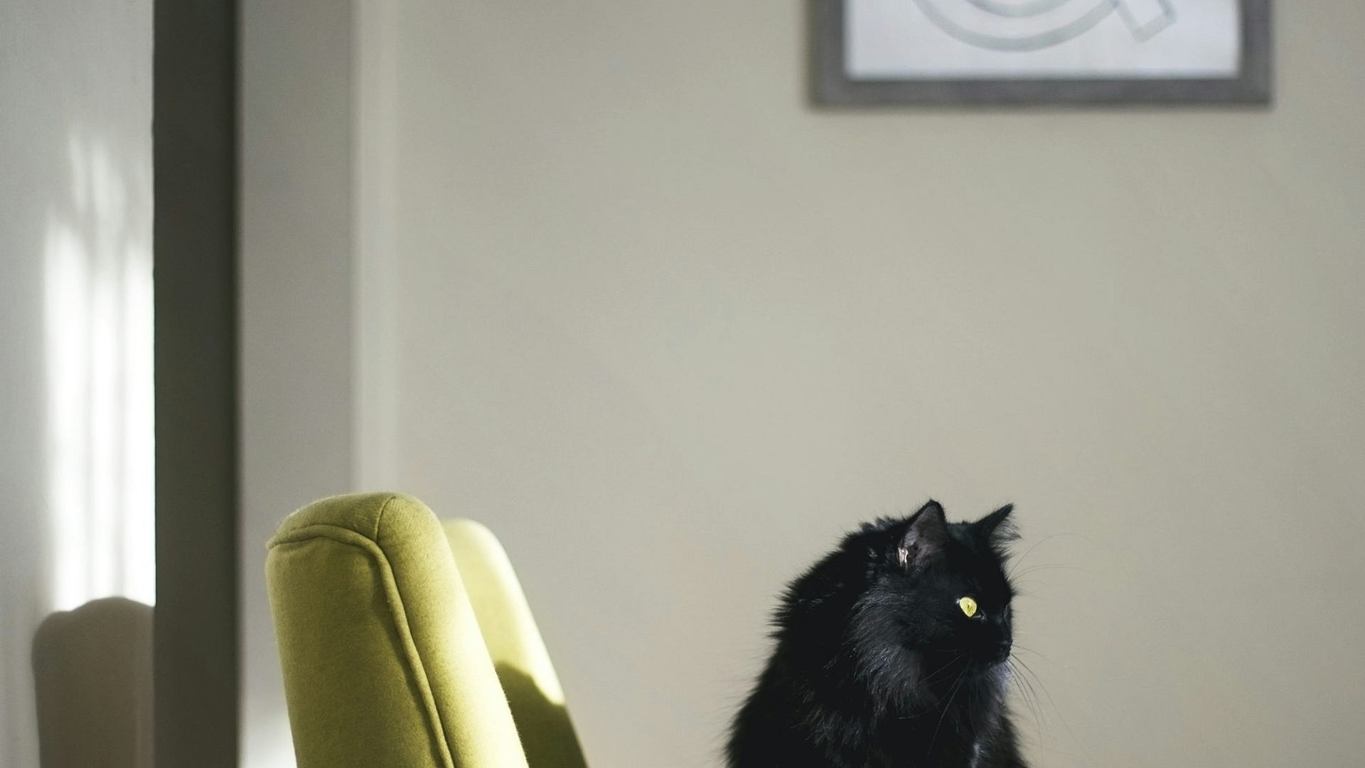 black cat, green sofa, sunlight, sunbeam, cat wallpaper, animal wallpaper, pet wallpaper, feline wallpaper, sitting cat, cozy cat, relaxing cat, domestic cat, indoor cat, green furniture, sunlit scene