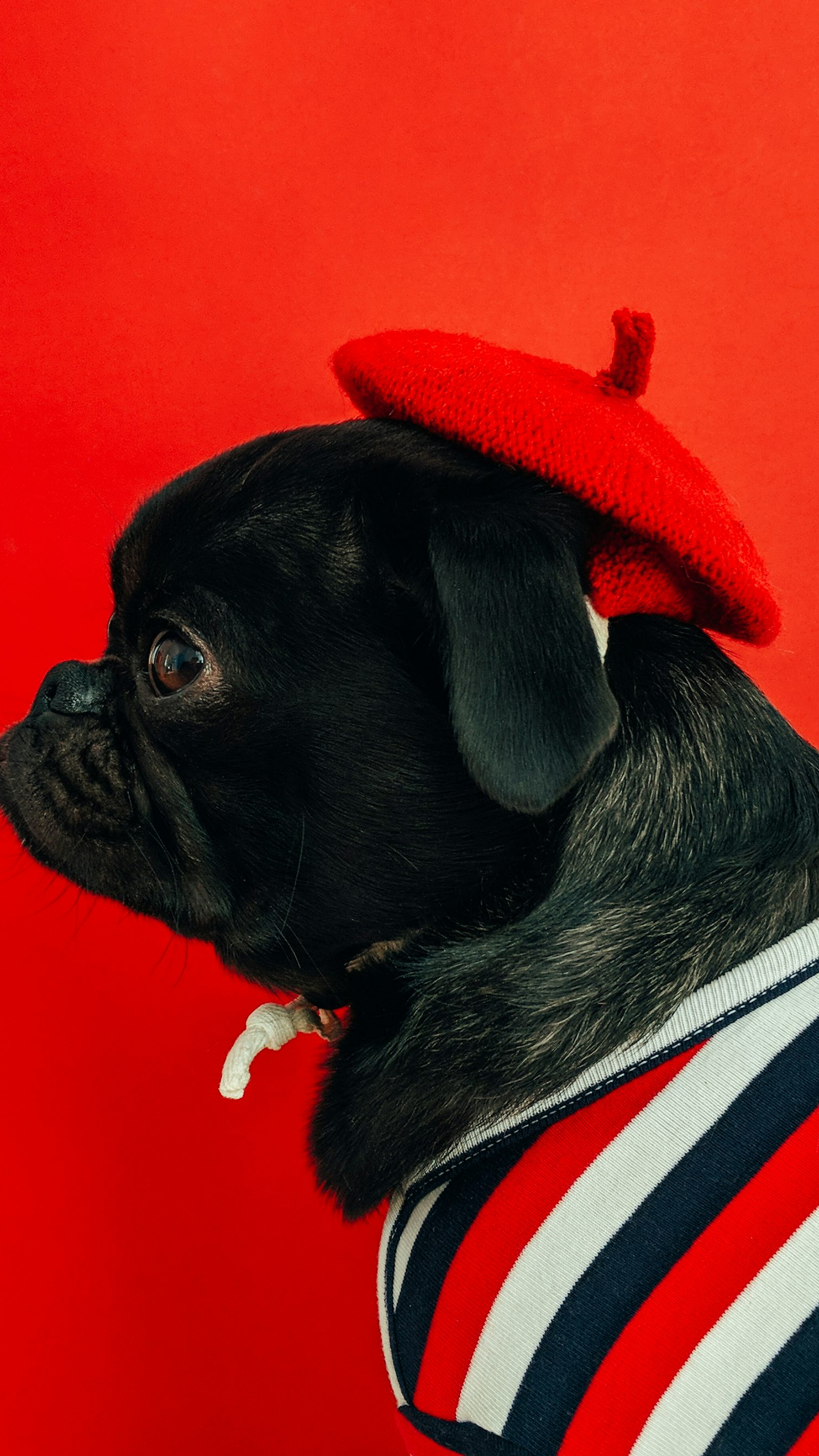 black pug, fawn pug, pug wallpaper, striped shirt, red and white striped, dog wallpaper, pet wallpaper, cute pug, adorable pug, funny pug, black and fawn pug, pug in clothes, dog in shirt, pet portrait, animal wallpaper