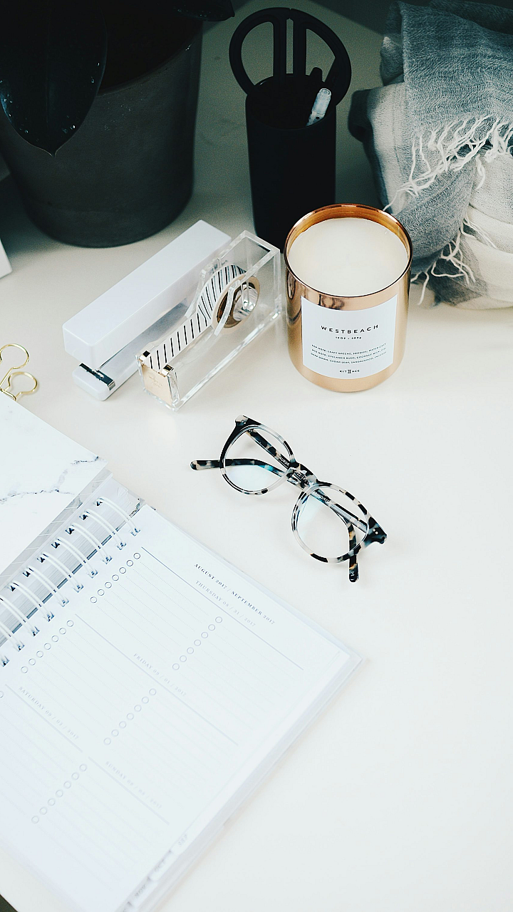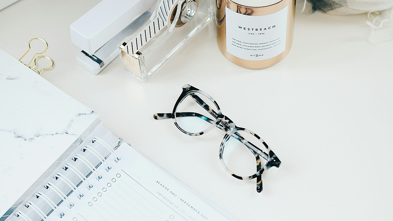 Keywords: black framed glasses, eyeglasses, spiral notebook, stationery, office supplies, study, learning, education, minimalist, simple, background, wallpaper, desktop wallpaper, phone wallpaper, dark academia