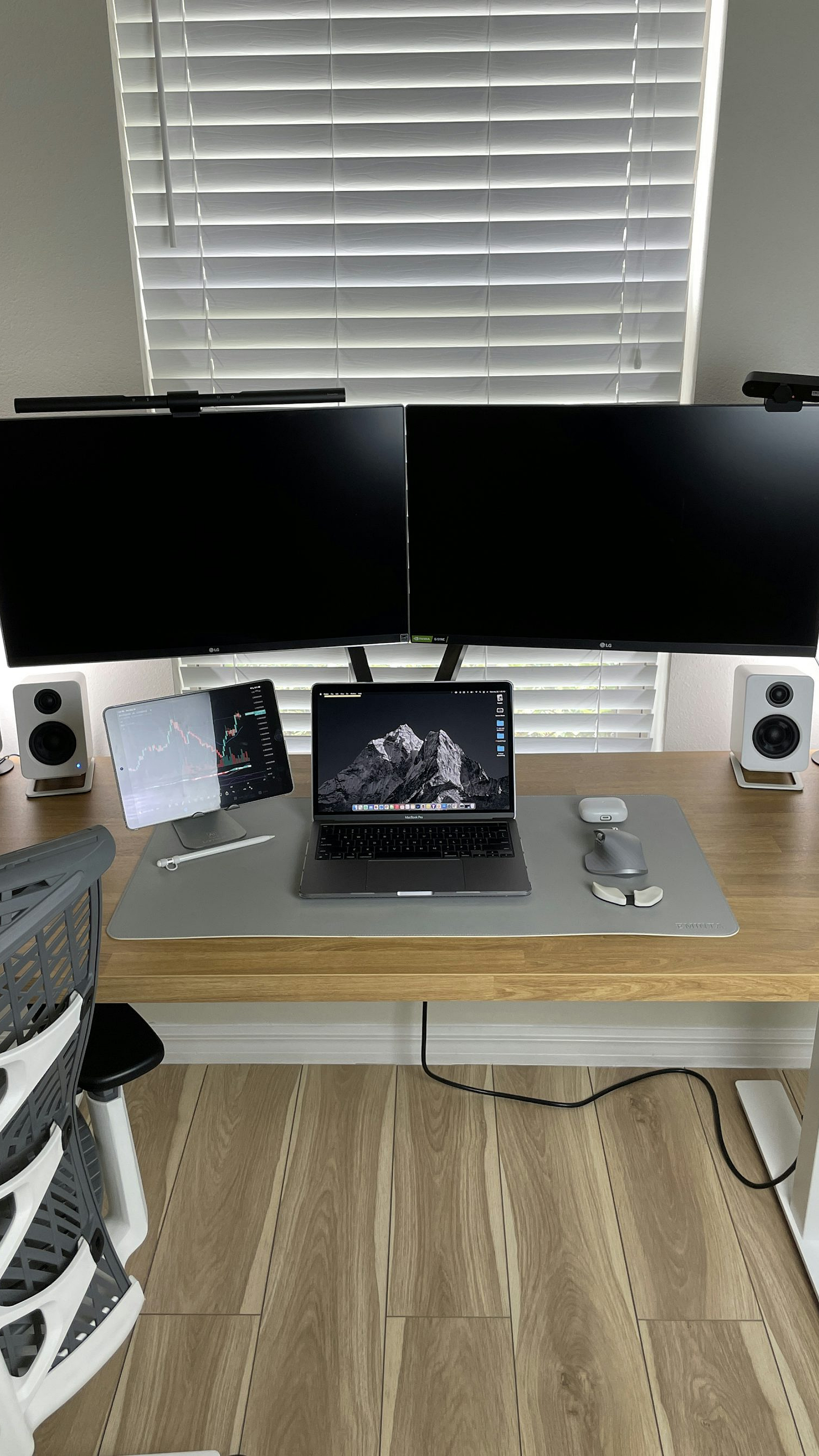 The minimalist design makes this wallpaper versatile. It can be used as a background for both personal and professional devices without being overly distracting. The contrast between the black iPad and the brown wooden table creates a visually appealing image that is both modern and timeless.