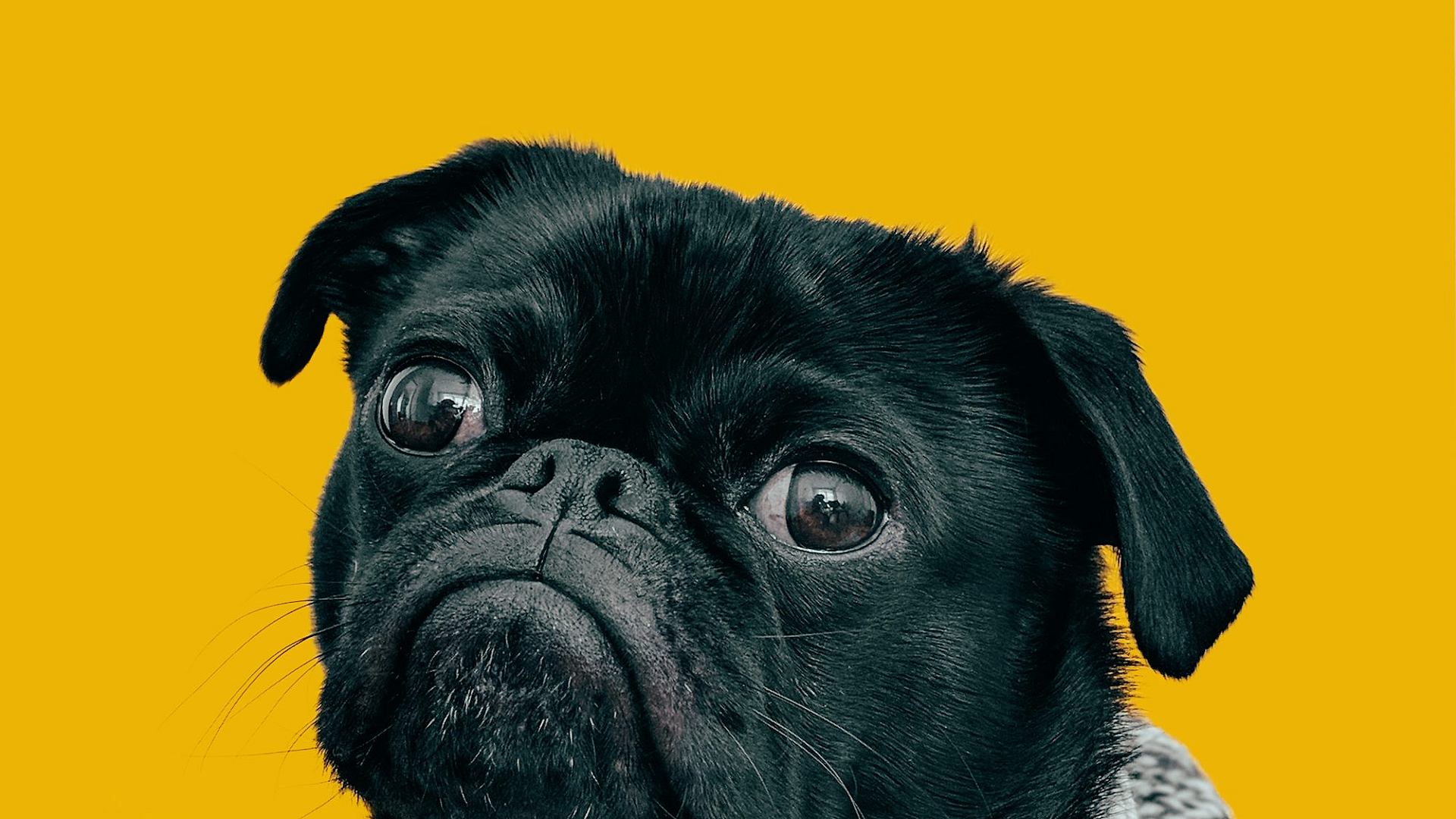 black pug, gray scarf, knitted scarf, pug wallpaper, black dog wallpaper, dog wallpaper, pet wallpaper, animal wallpaper, winter wallpaper, cozy wallpaper, cute wallpaper, adorable wallpaper, funny wallpaper, dark wallpaper, gray wallpaper