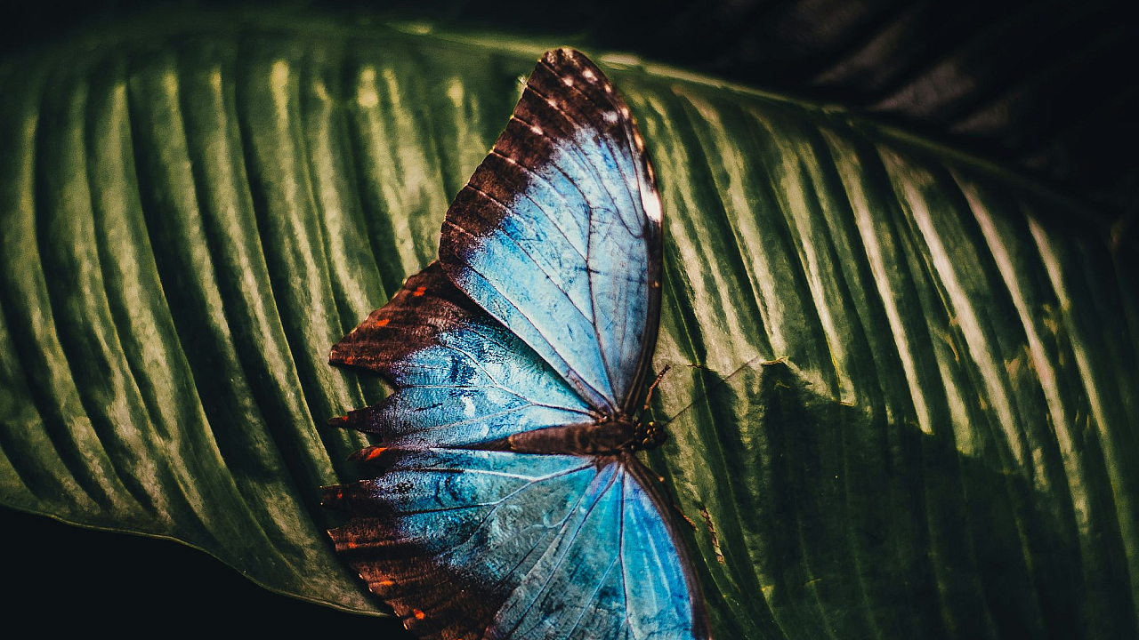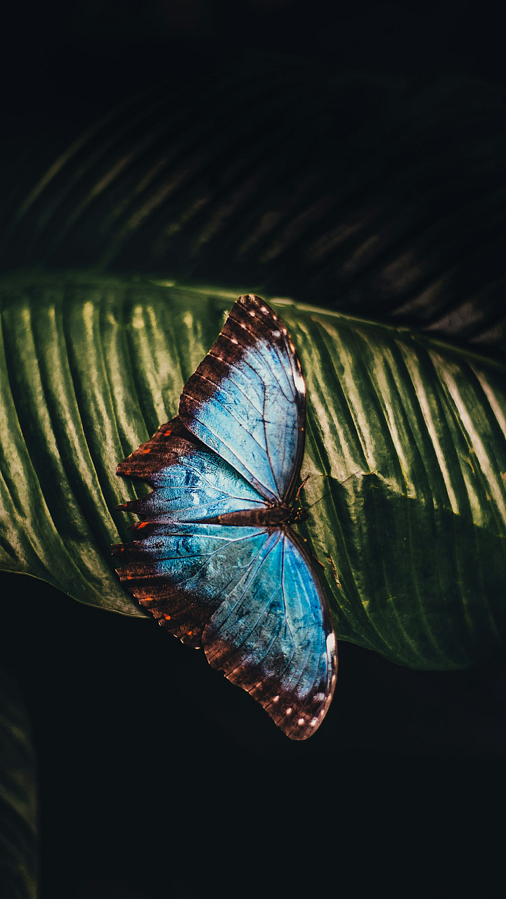 blue butterfly, brown butterfly, butterfly wallpaper, leaf, foliage, nature wallpaper, insect wallpaper, perching butterfly, macro photography, close-up, wings, insect, invertebrate, fauna, blue and brown, wildlife