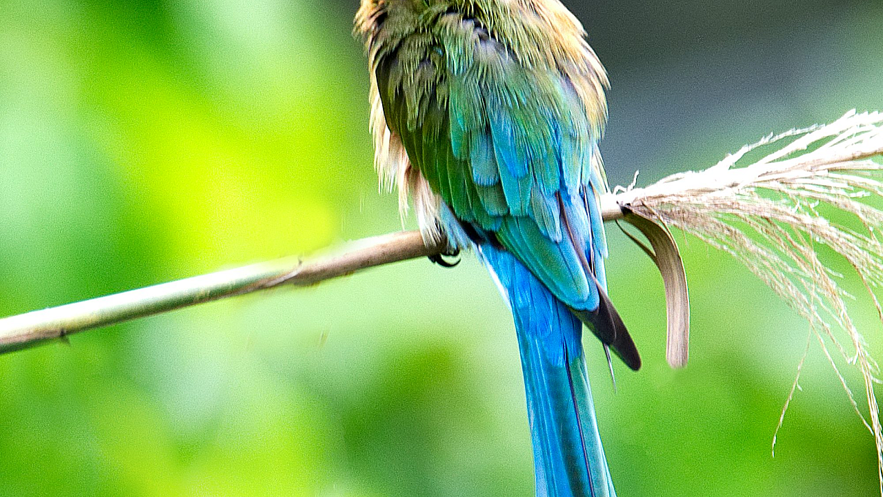 Wallpaper Blue, Yellow, and Green Long-Beaked Bird on Branch