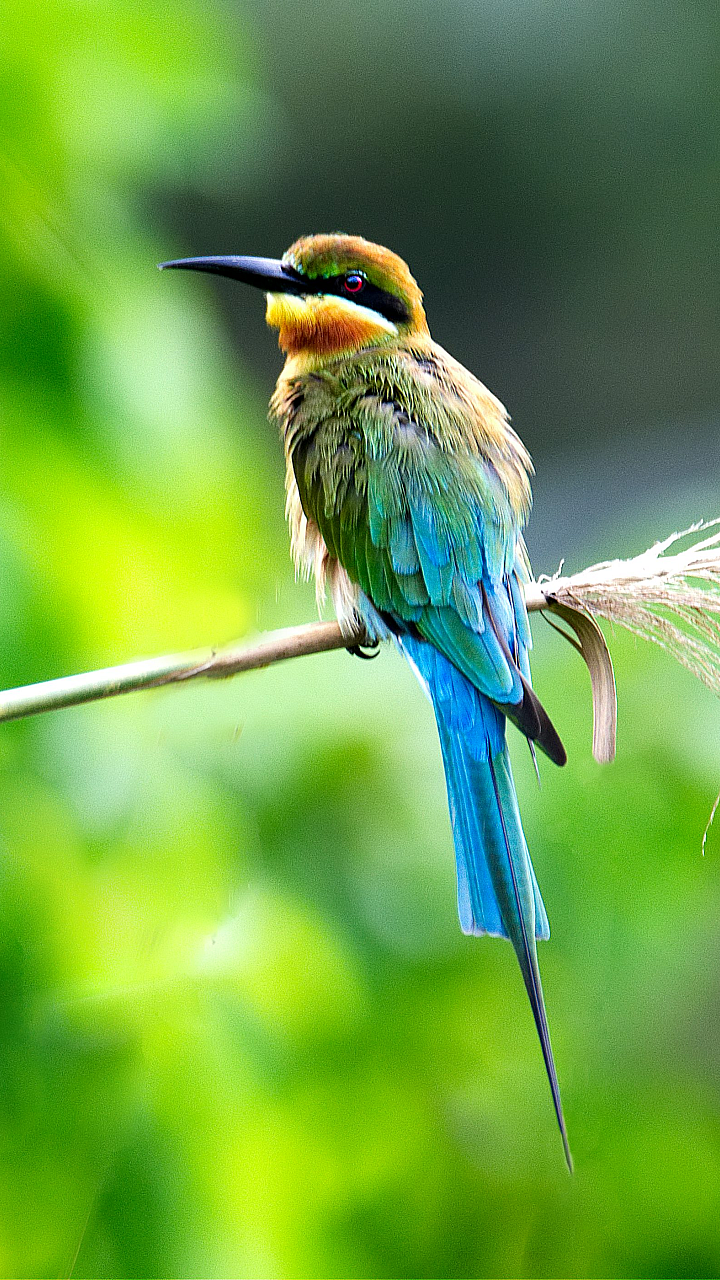 blue bird, yellow bird, green bird, long beak, bird on branch, tropical bird, exotic bird, bird wallpaper, nature wallpaper, wildlife wallpaper, animal wallpaper, avian wallpaper, brightly colored bird, long-billed bird, tree branch