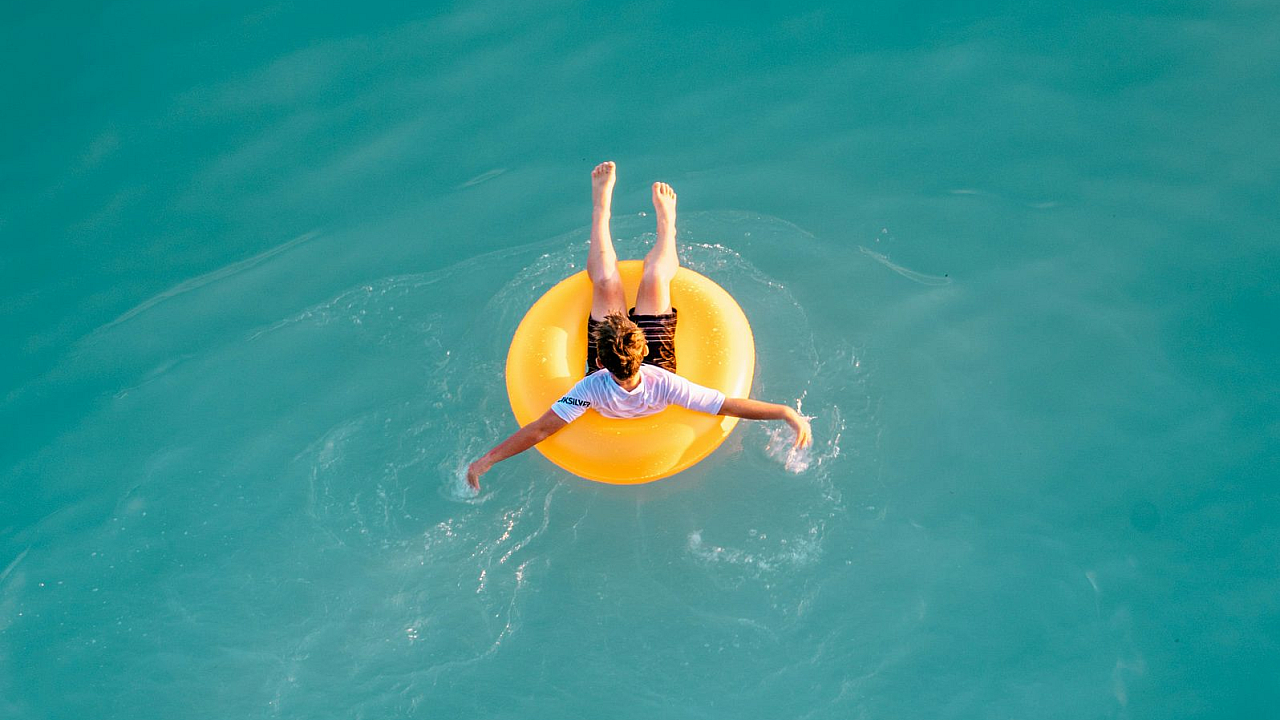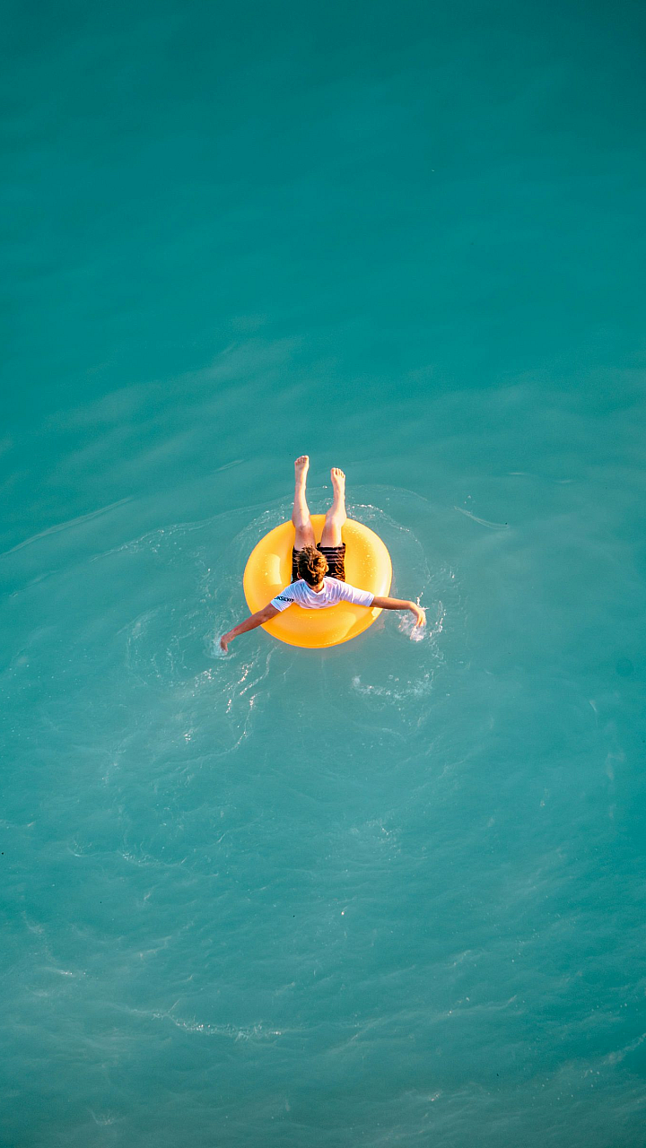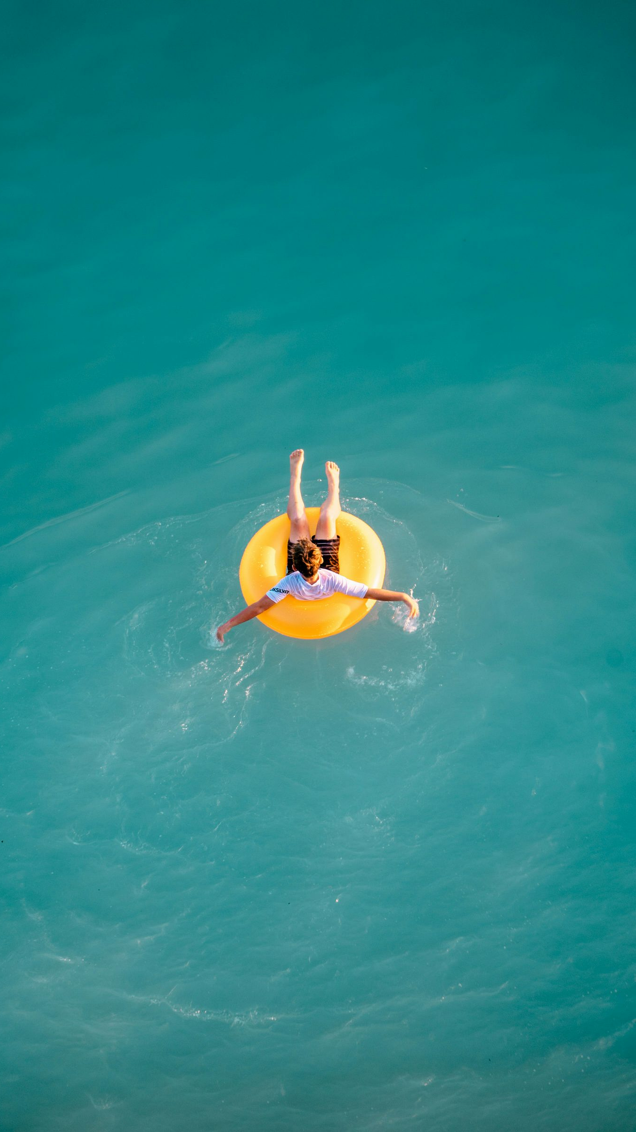 boy, sitting, buoy, ocean, sea, water, beach, coast, summer, child, kid, youth, young, floating, relaxing