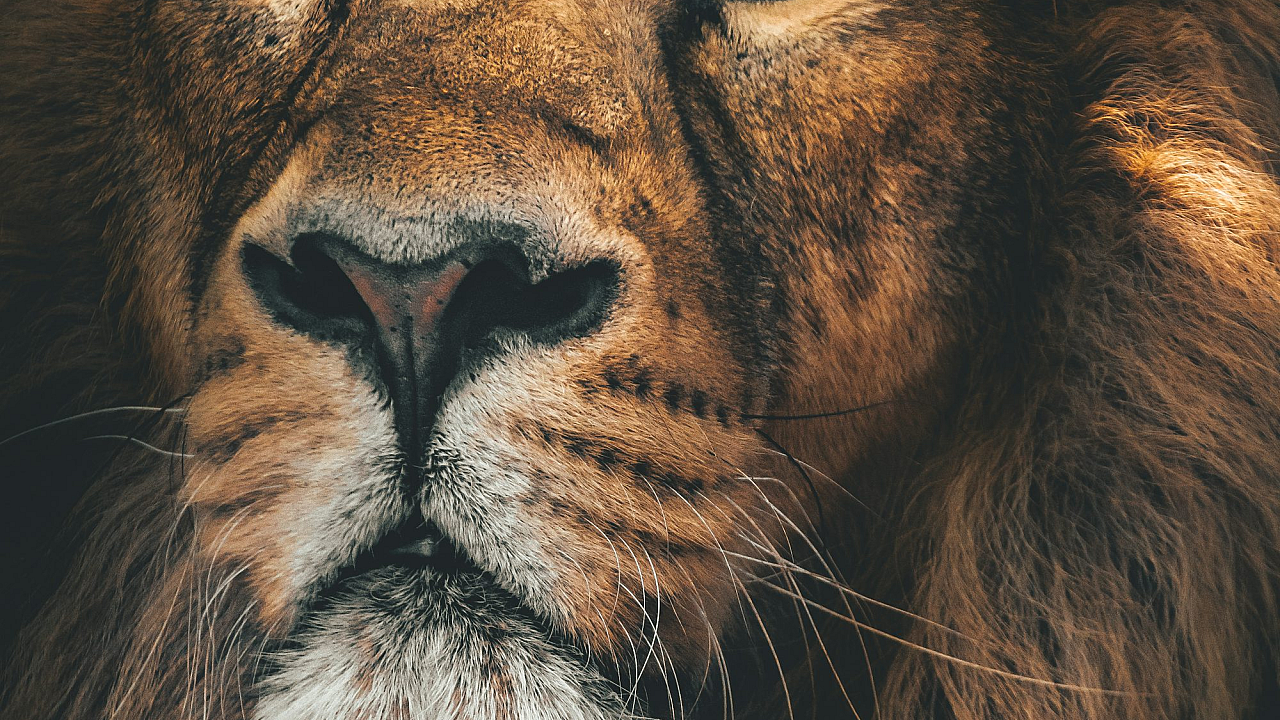 This wallpaper features a striking image of a brown lion with captivating white eyes. The unusual eye color creates a mesmerizing effect, setting this wallpaper apart from typical lion imagery. The rich brown tones of the lion’s fur are beautifully contrasted against the stark white of its eyes.