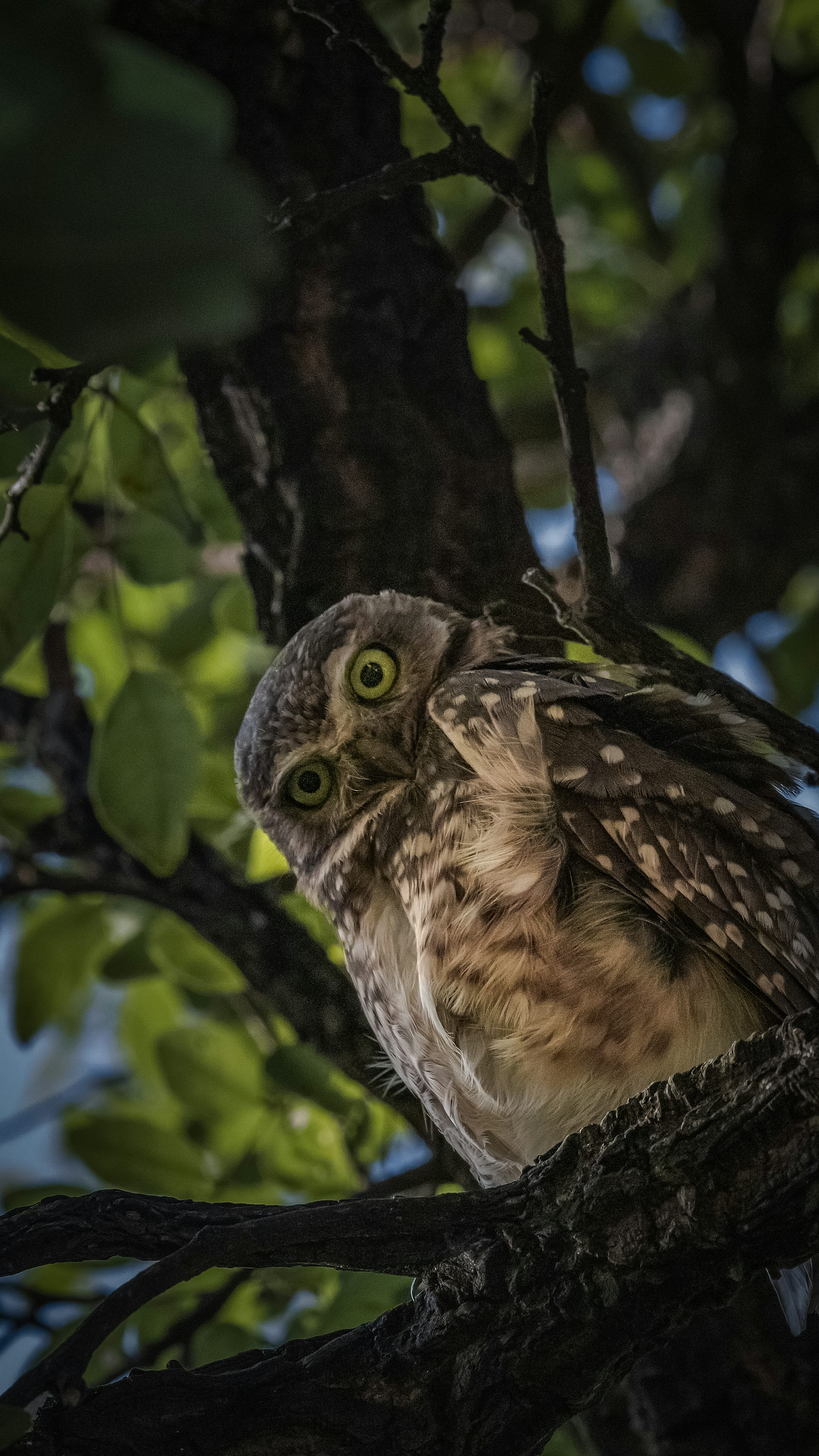 brown owl, owl, tree branch, daytime, bird, wildlife, nature, forest, woodland, branches, perched, raptor, bird of prey, avian, animal