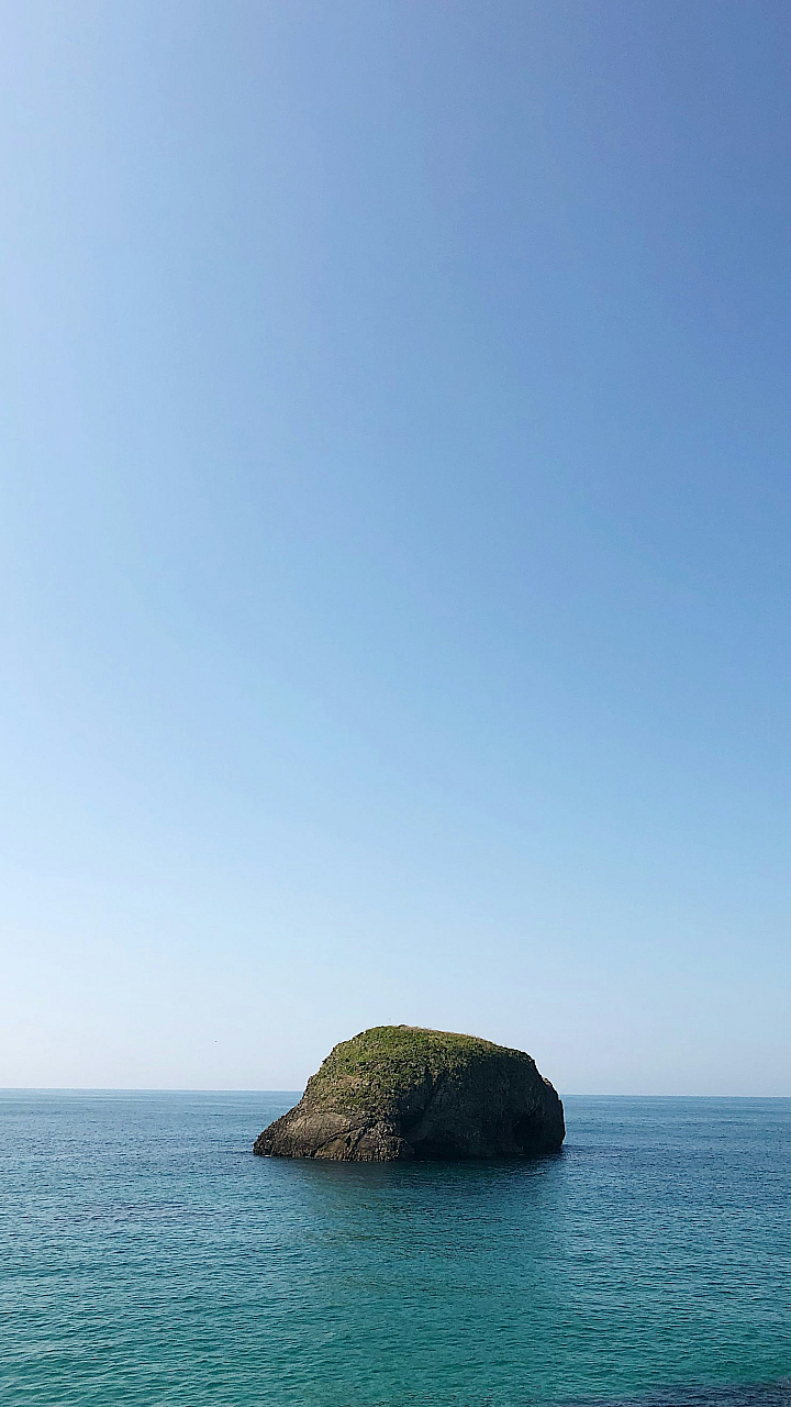 The image offers a perfect blend of earthy tones and cool blues, making it a versatile option for various desktop backgrounds or mobile screens. The sharp contrast between the brown of the rock formation and the blue of the sea and sky is particularly striking. Whether you prefer minimalist or nature-inspired designs, this wallpaper will surely add a touch of serenity and visual appeal to your device.