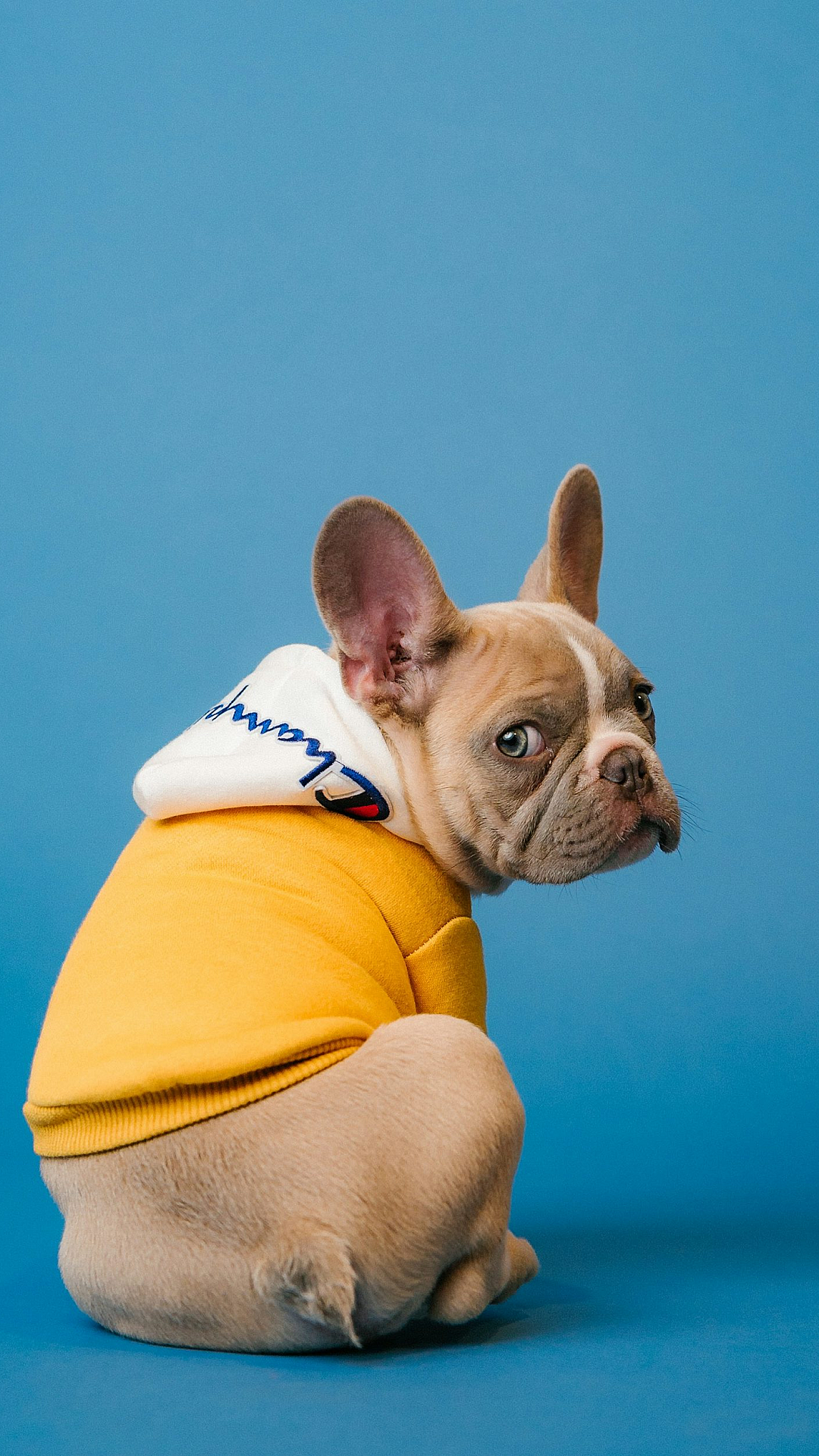 brown dog, short coated dog, orange hoodie, dog in hoodie, puppy in hoodie, dog apparel, dog clothing, cute dog, adorable dog, pet fashion, dog wallpaper, animal wallpaper, brown dog wallpaper, dog in orange, short haired dog