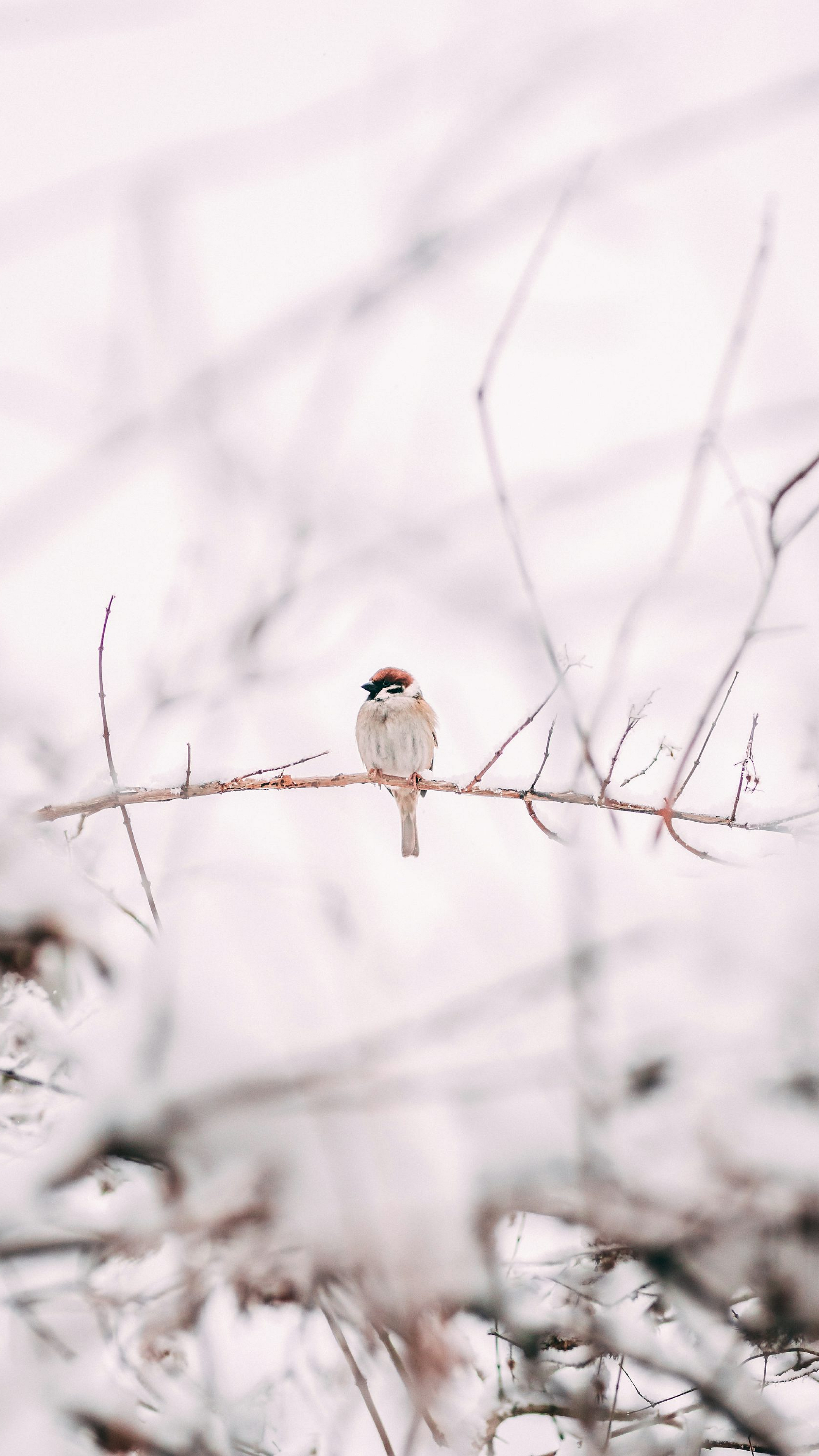 This wallpaper features a brown sparrow perched delicately on a tree branch. The image captures the intricate details of the bird’s feathers and the texture of the twig. The overall feel is one of peaceful nature, showcasing the beauty of wildlife in its natural habitat. The sparrow‘s posture suggests a moment of quiet observation, making it an ideal image for a relaxing and calming wallpaper.