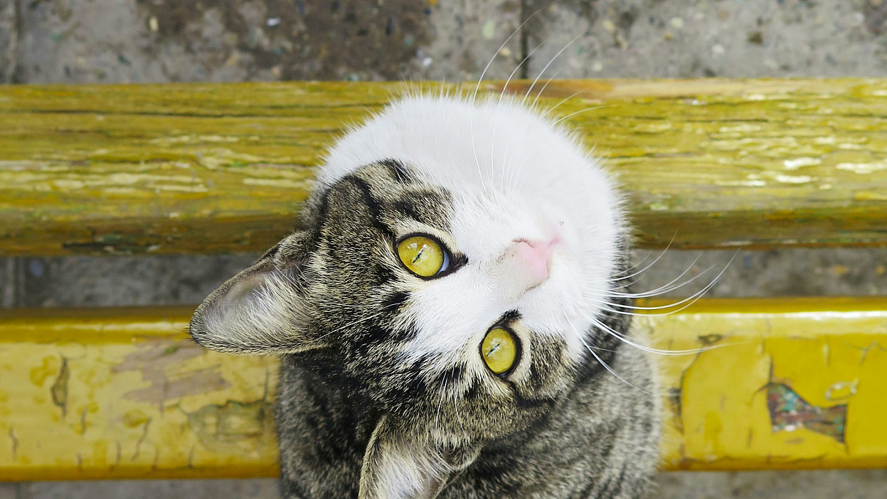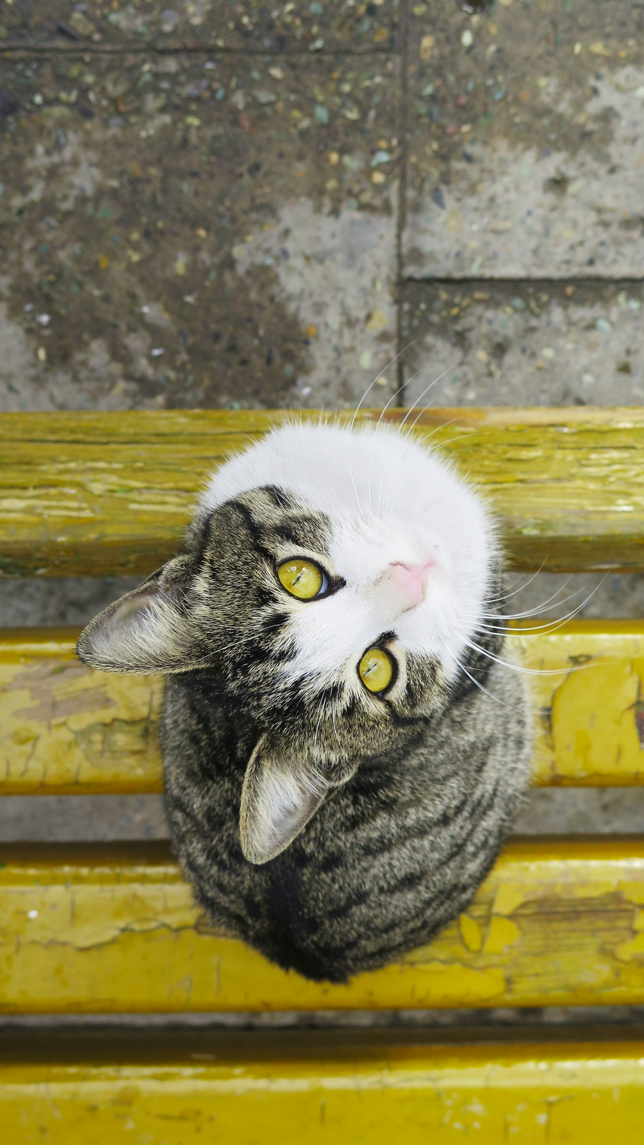 brown tabby cat, yellow wooden bench, cat wallpaper, tabby cat, brown cat, yellow bench, wooden bench, feline, kitty, pet, animal, adorable, cute, domestic cat, sitting cat