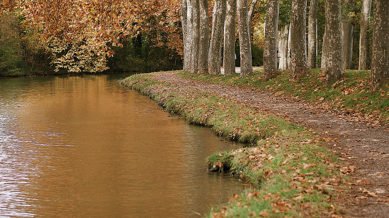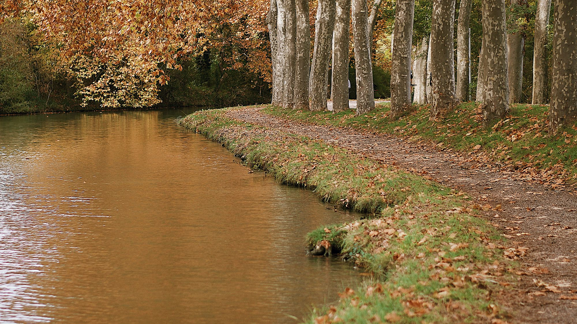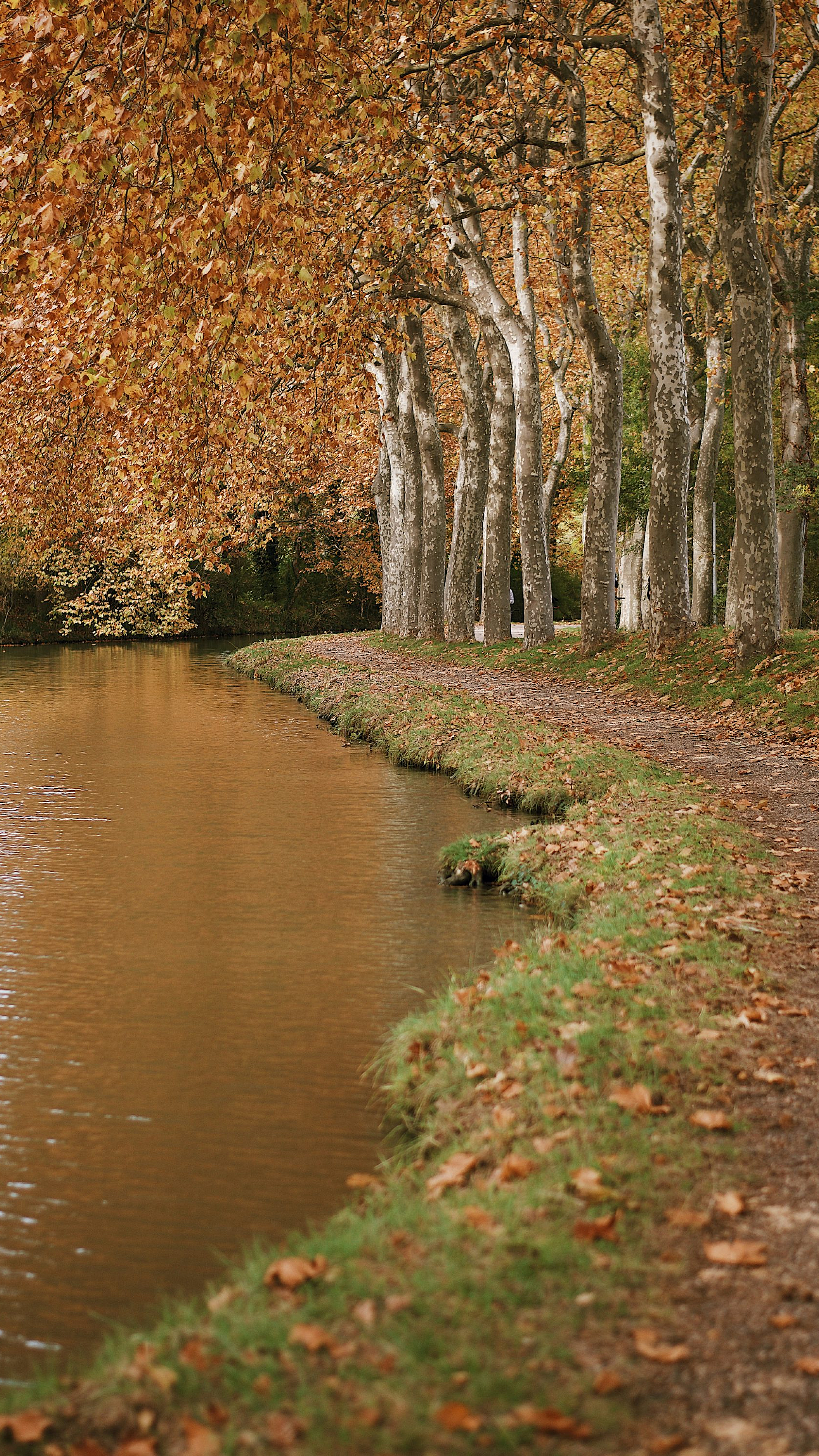 brown trees, river, daytime, nature, landscape, scenery, water, woods, forest, trees, riverbank, riverside, rural, countryside, outdoors