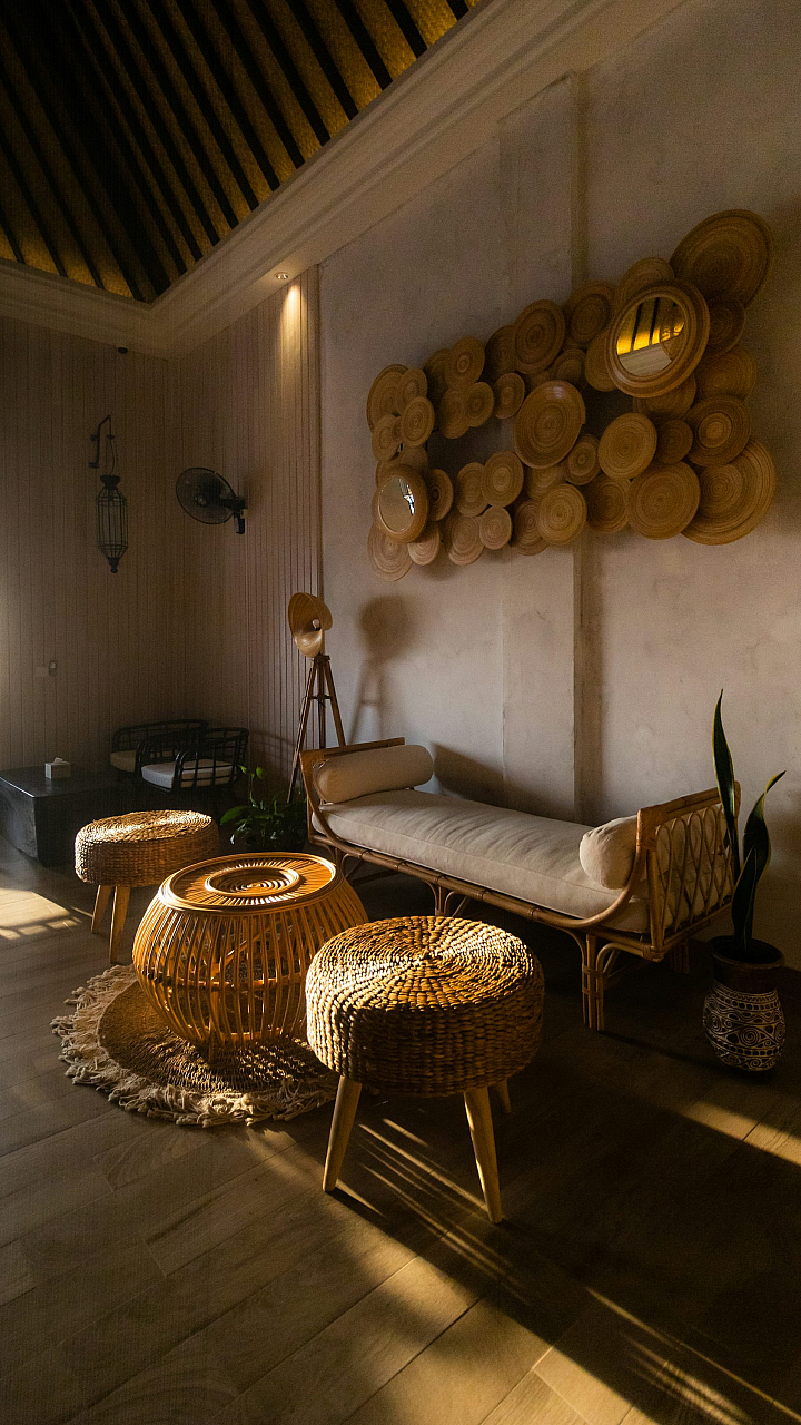 brown woven round table, round table, woven table, brown table, chairs, dining chairs, woven furniture, rustic furniture, round dining table, brown furniture, circular table, wicker table, rattan table, home decor, interior design