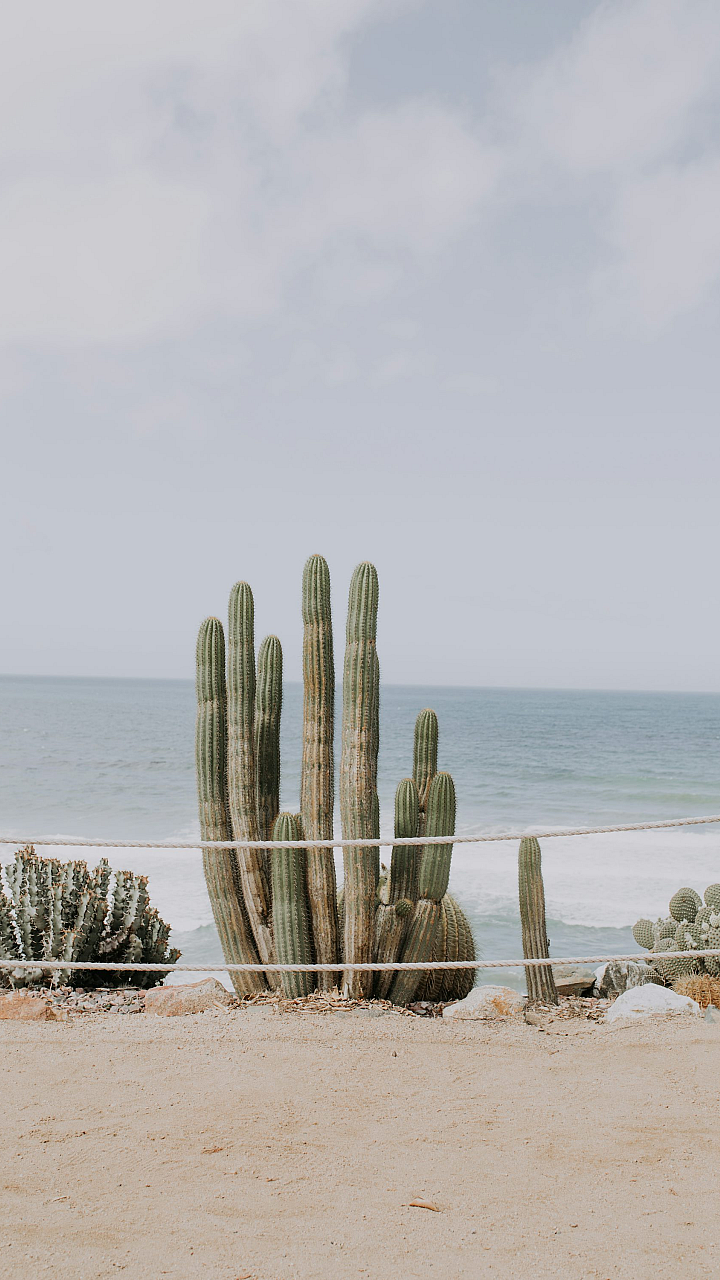 Wallpaper Cactus on Shore Under Cloudy Sky