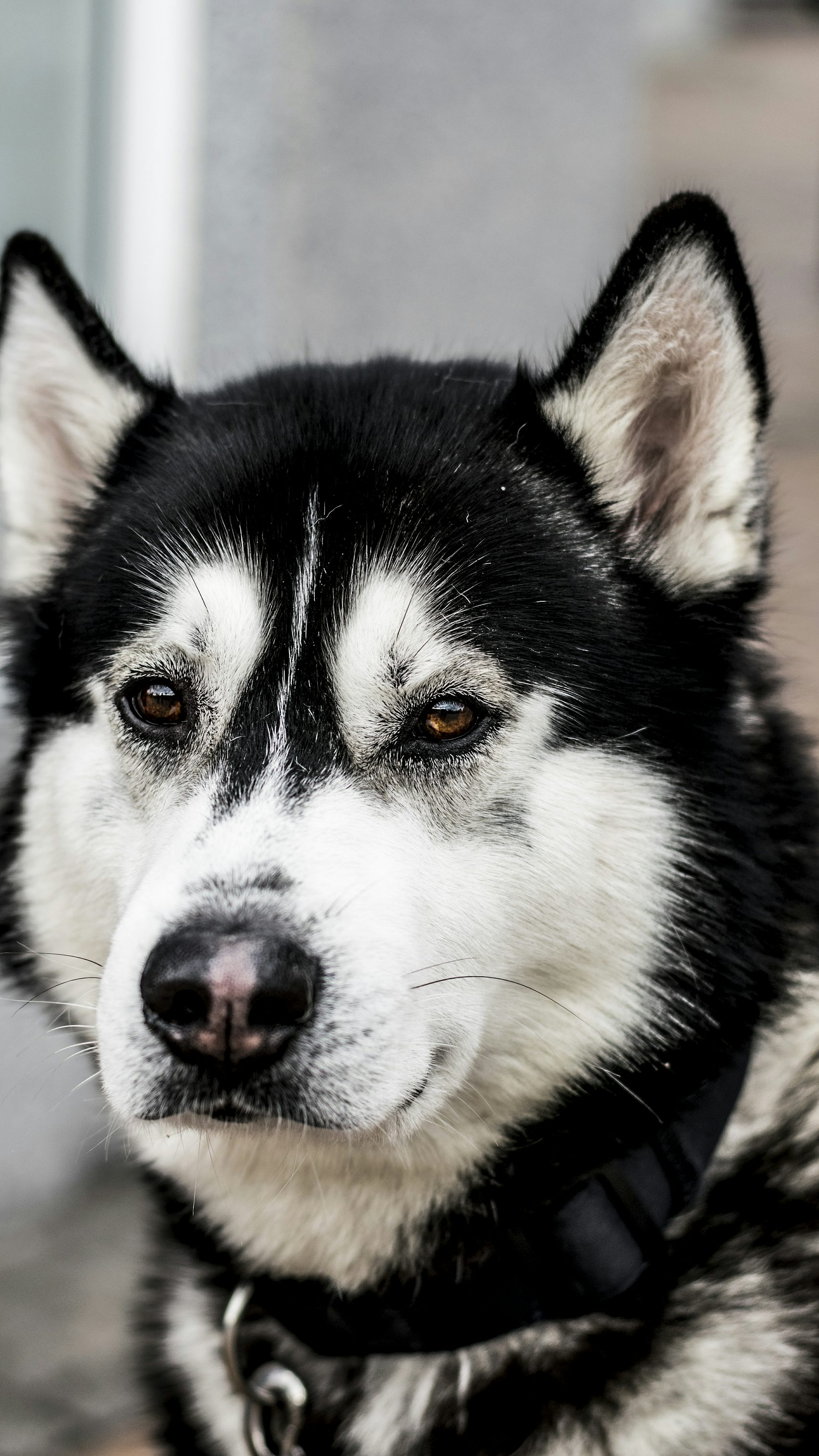Wallpaper Close Up Photo of Black and White Siberian Husky Dog
