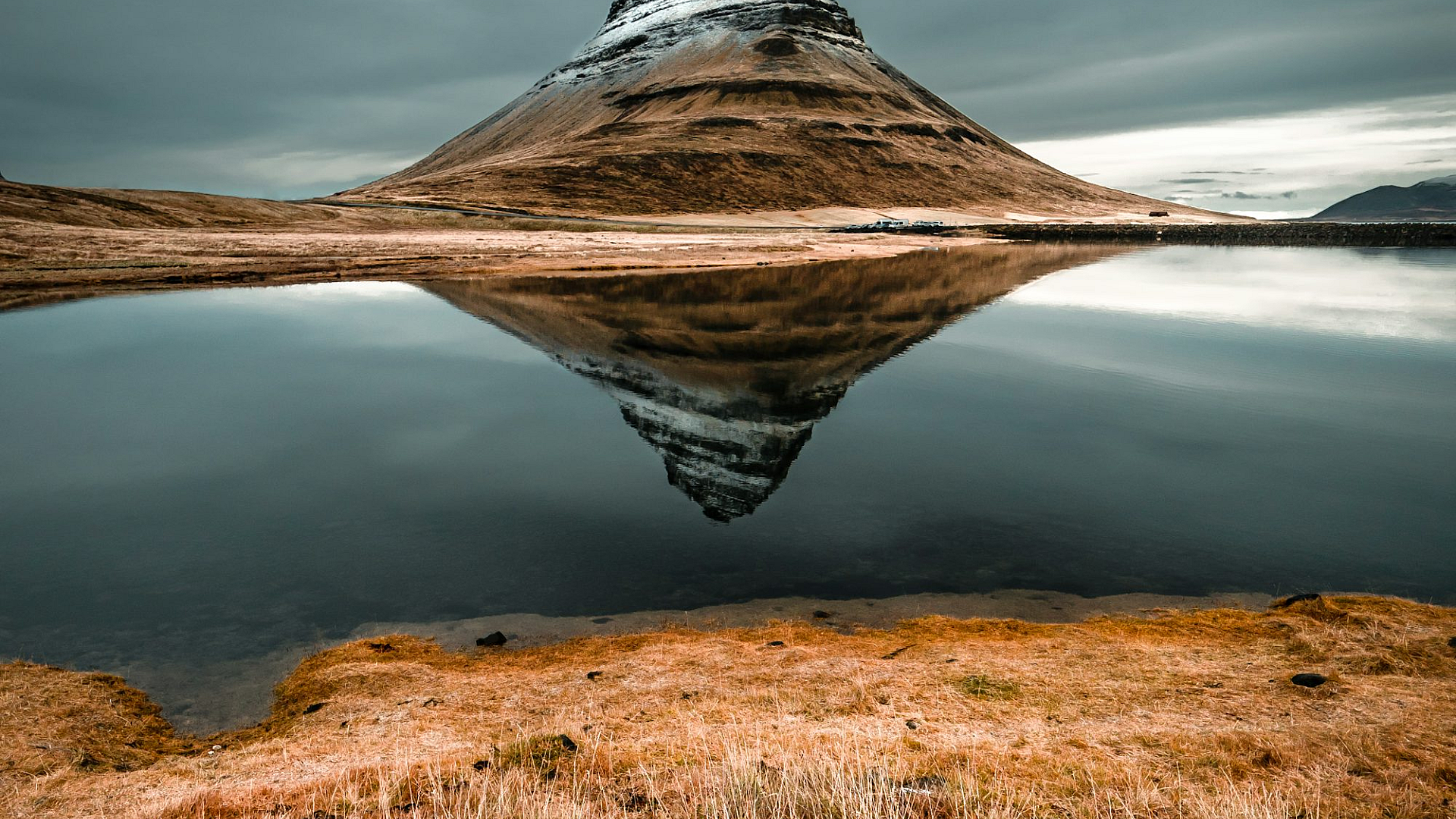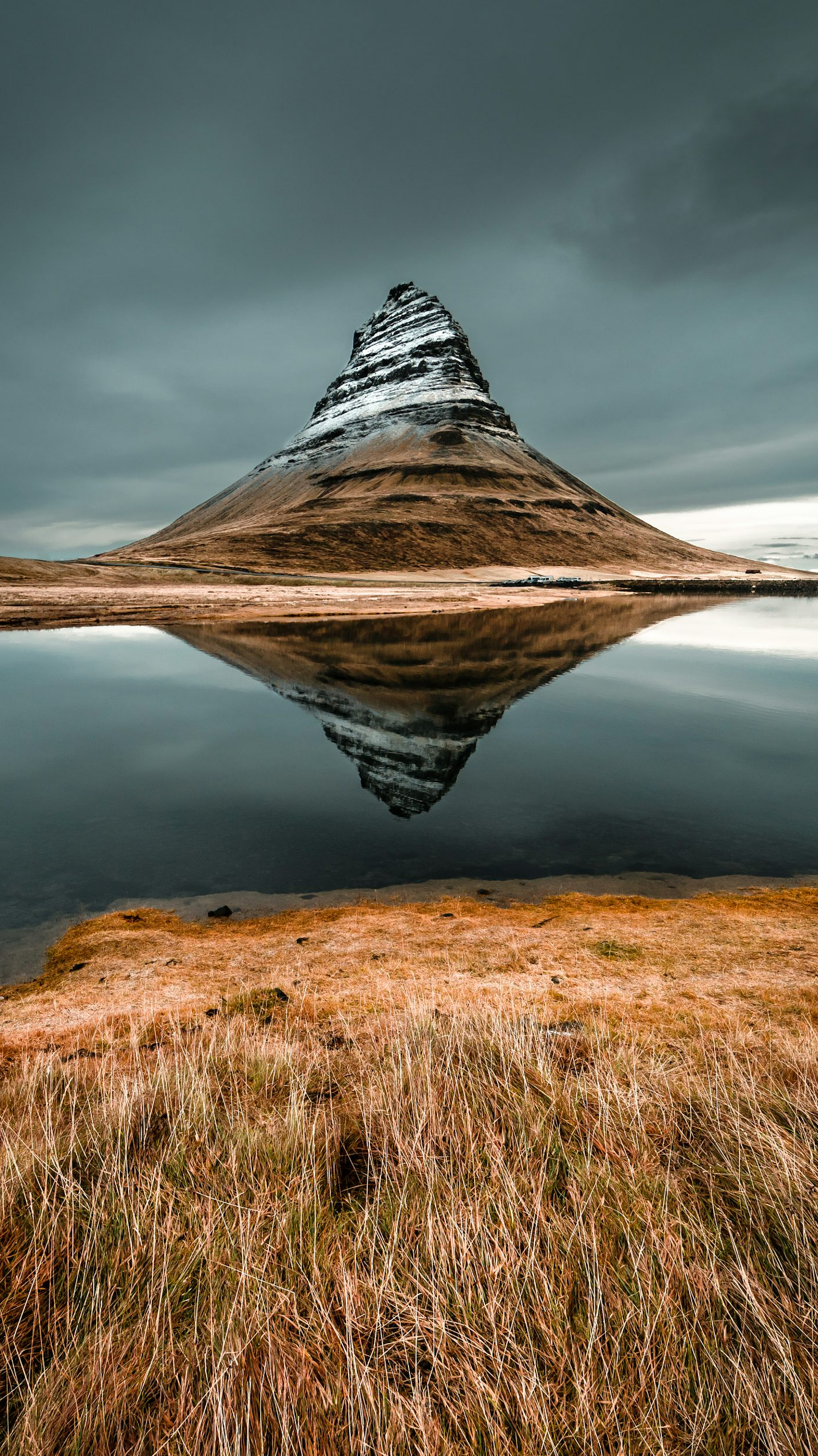 cone mountain, distant water, body of water, lake, ocean, sea, mountain landscape, scenic wallpaper, nature wallpaper, volcanic cone, mountain peak, waterscape, landscape photography, high resolution wallpaper, desktop wallpaper