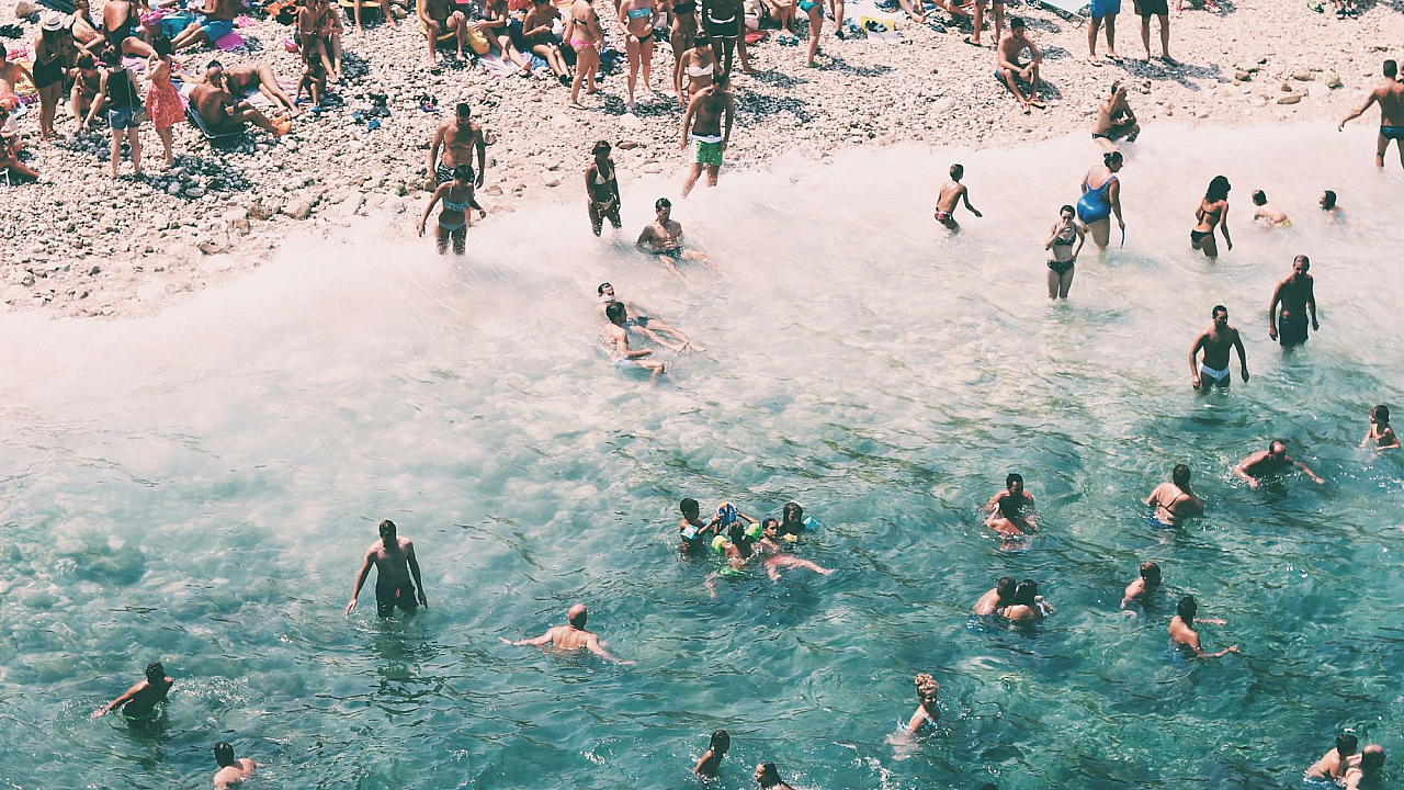 crowded beach, beach crowd, people on beach, beachgoers, summer beach, ocean beach, coastal scene, seaside crowd, packed beach, beach throng, many people, dense crowd, summer vacation, holiday beach, beach scene