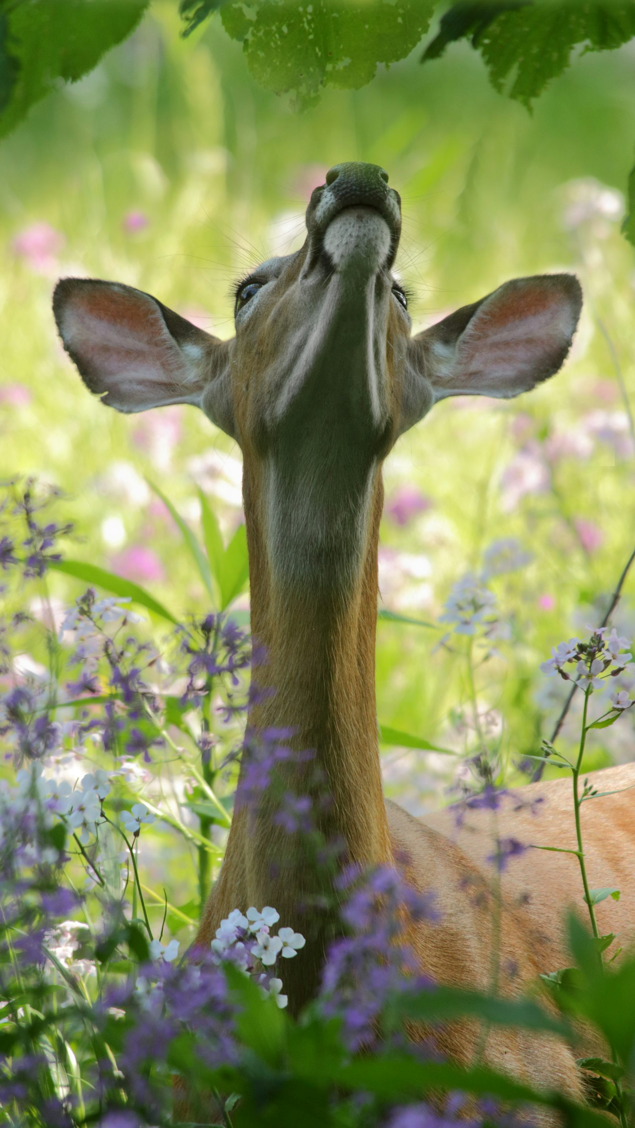 deer, deer wallpaper, wildlife wallpaper, animal wallpaper, nature wallpaper, leaf, foliage, daytime, daylight, sunlit, looking up, upward gaze, forest, woods, mammal