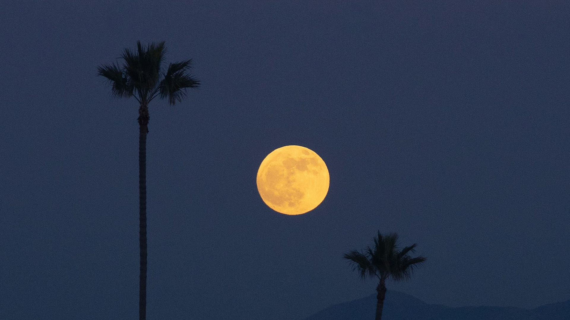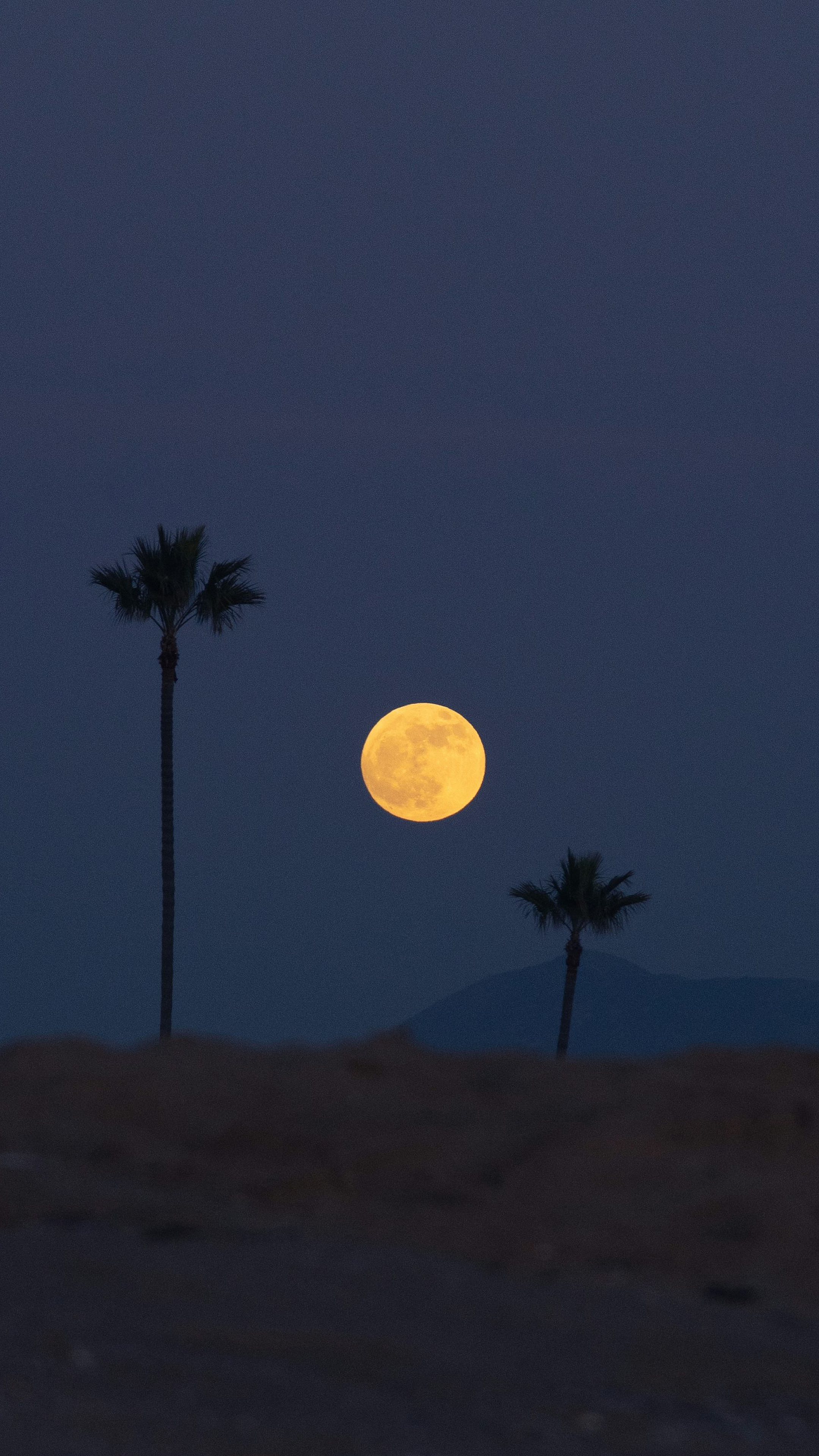 Wallpaper Full Moon Over Palm Trees