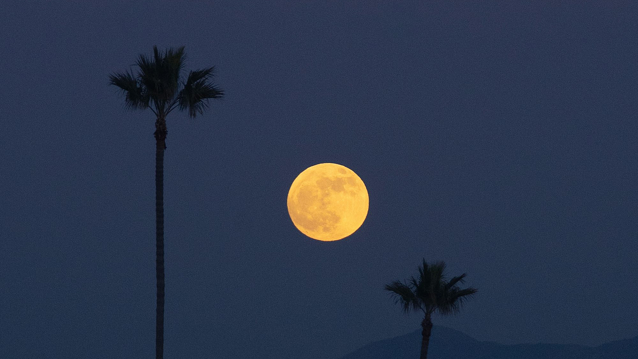 full moon over the palm trees