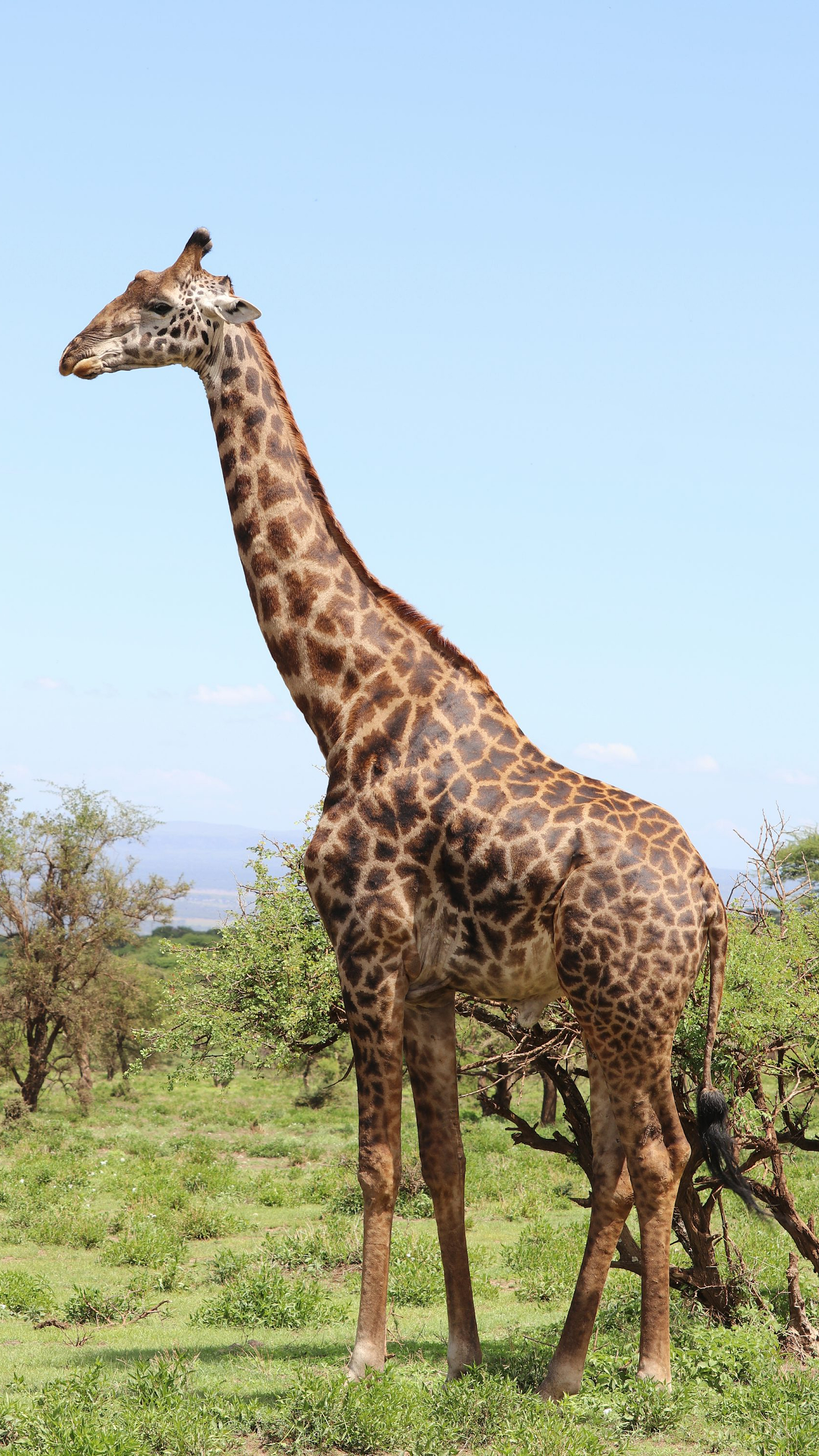 giraffe, wallpaper, grass, green, daytime, savanna, african, animal, mammal, wildlife, nature, landscape, herbivore, tall, giraffa camelopardalis