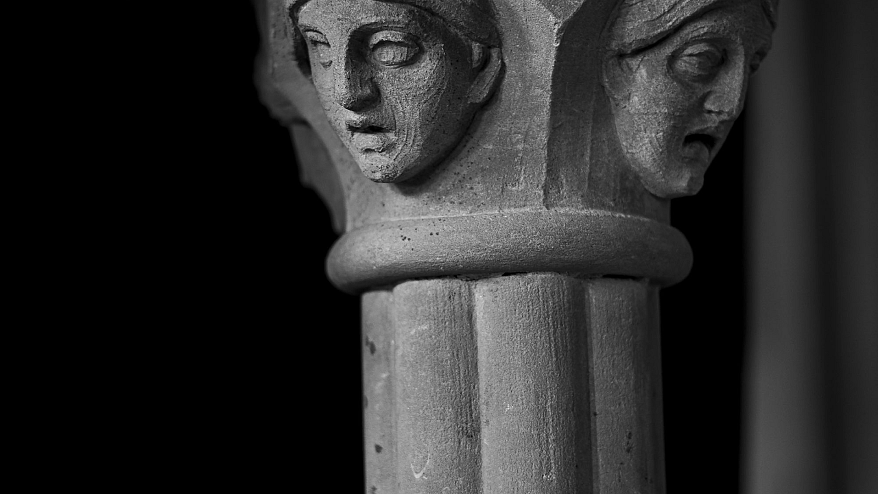 Wallpaper Gray Concrete Statue in Grayscale Photography