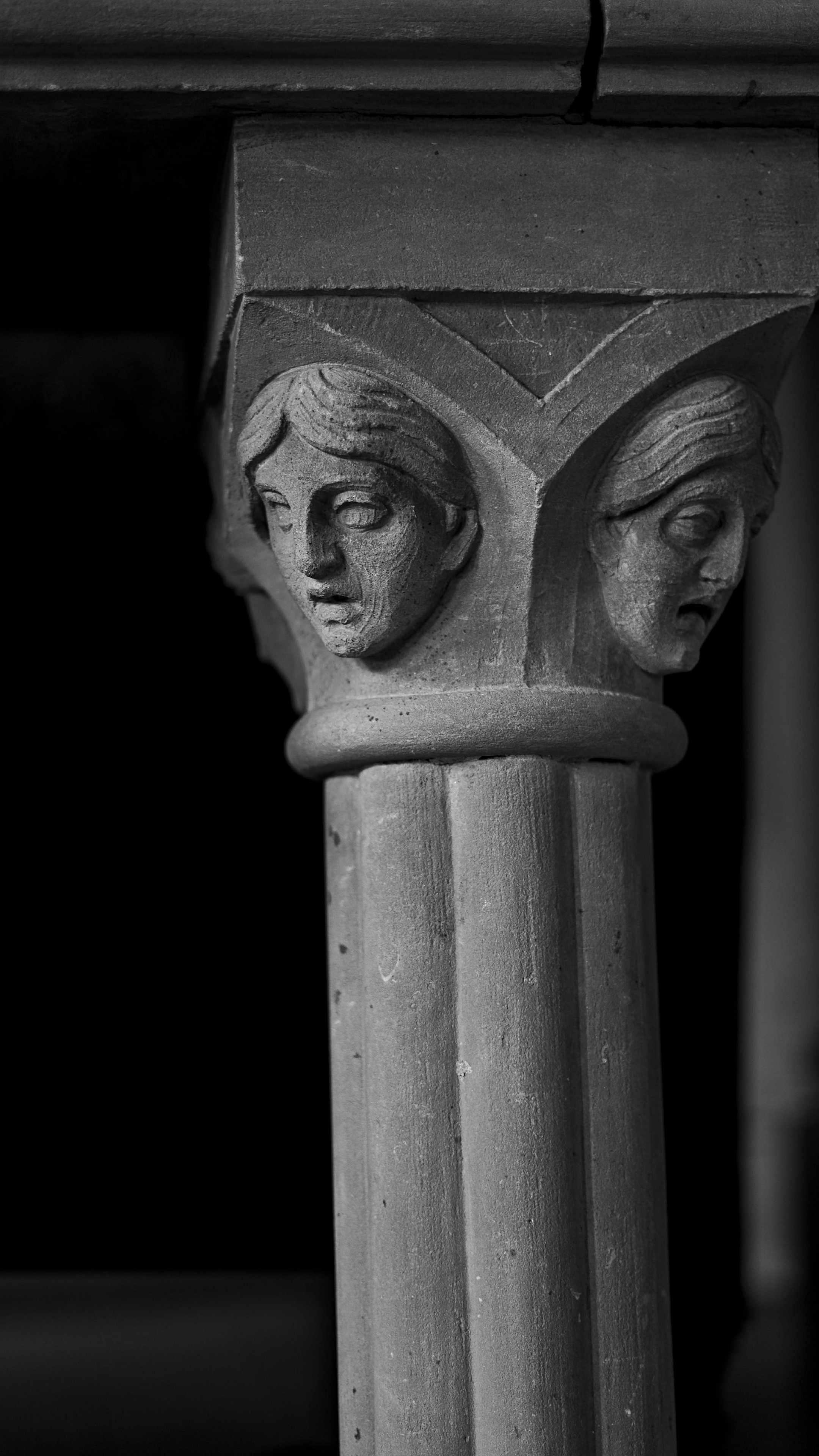gray concrete statue in grayscale photography
