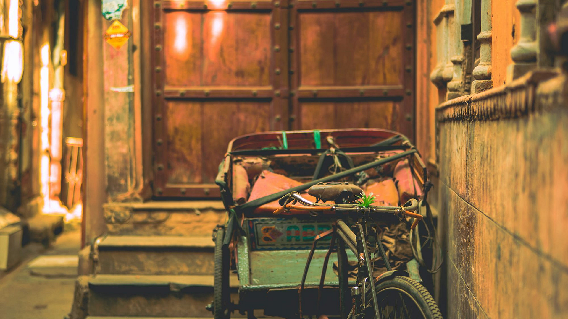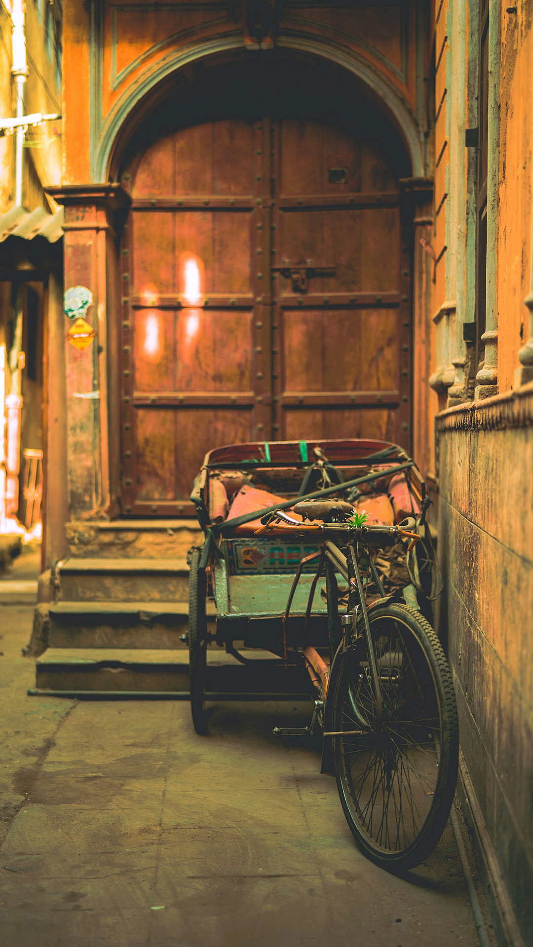 Wallpaper Gray Trike in Front of Closed Door