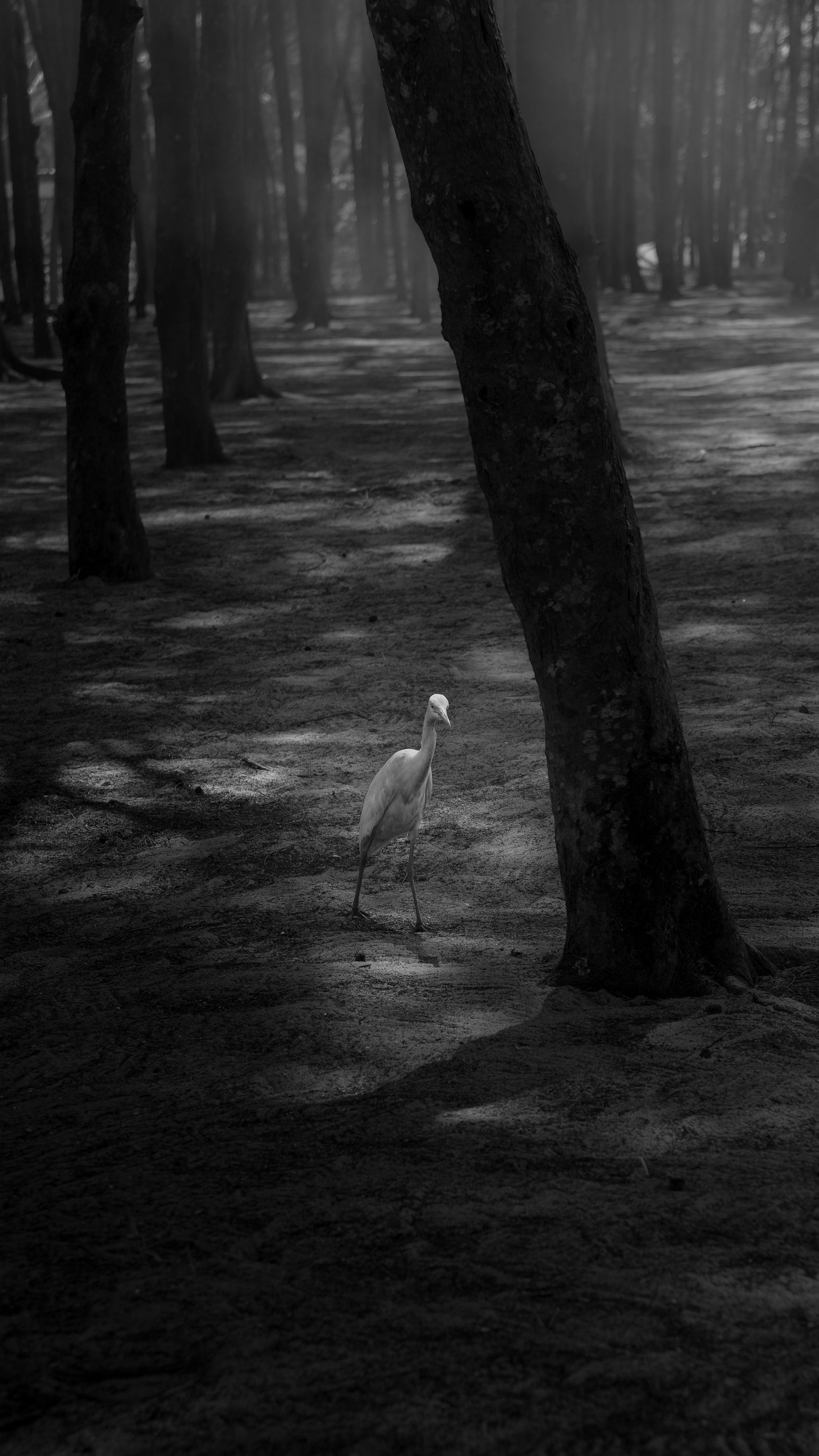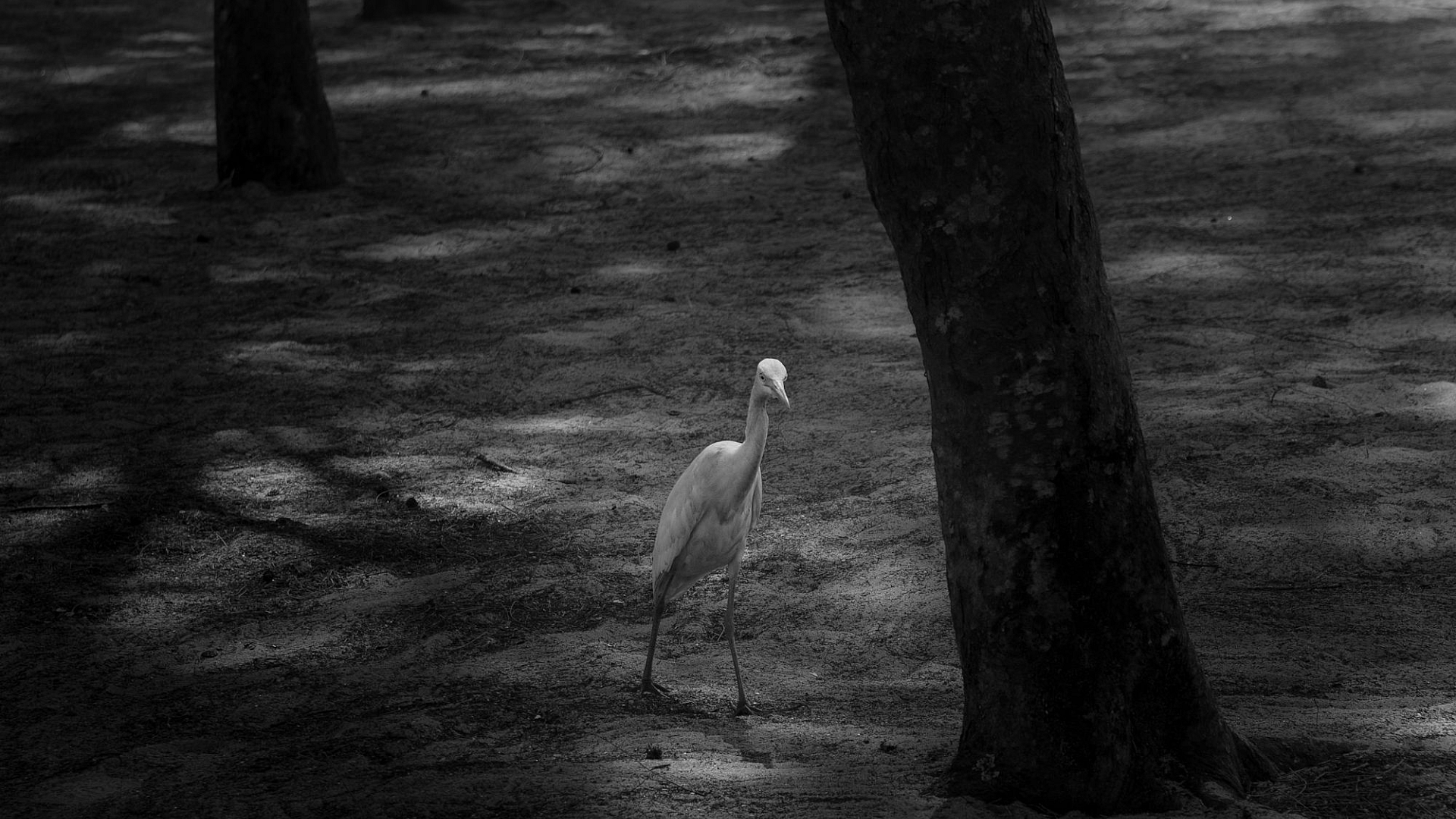 grayscale, monochrome, black and white, photography, bird, white bird, tree, branch, nature, wildlife, avian, feather, perched, outdoors, animal